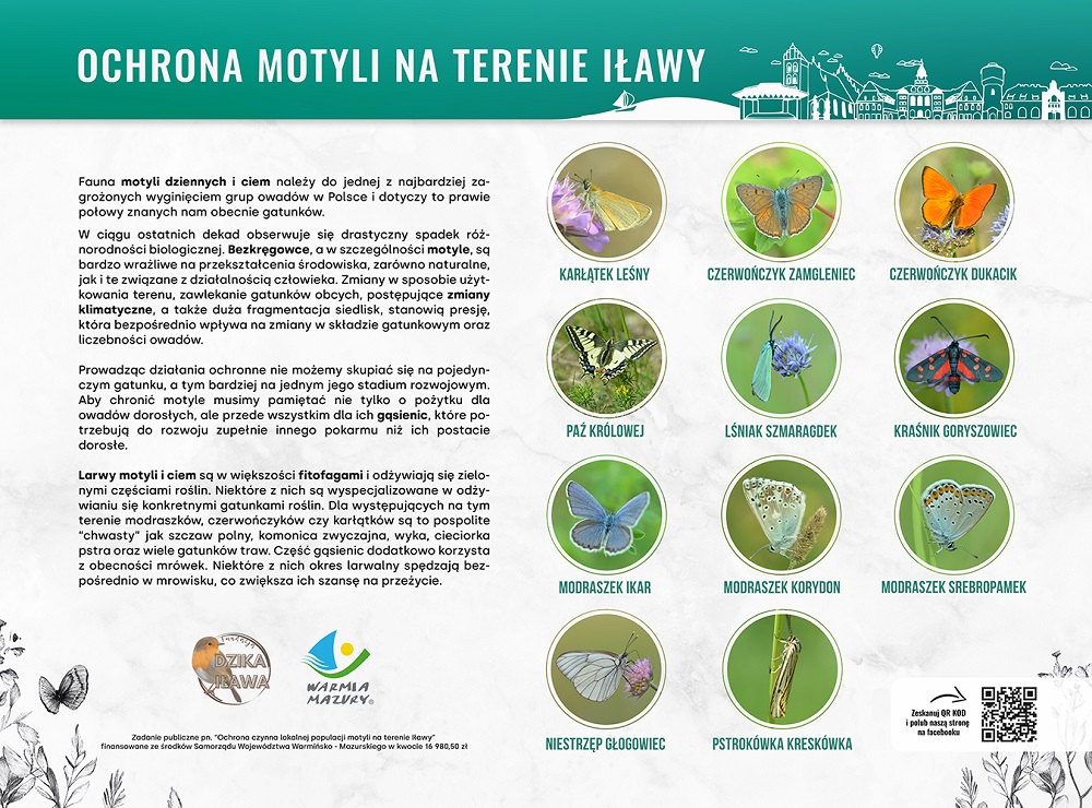 Dzięki finansowaniu, jakie Fundacja Dzika Iława otrzymała z budżetu Samorządu Województwa Warmińsko - Mazurskiego na kwotę 16.980,50 zł, w bieżącym roku zrealizowane zostało zadanie publiczne pn. “Ochrona czynna lokalnej populacji motyli na terenie Iławy”.
