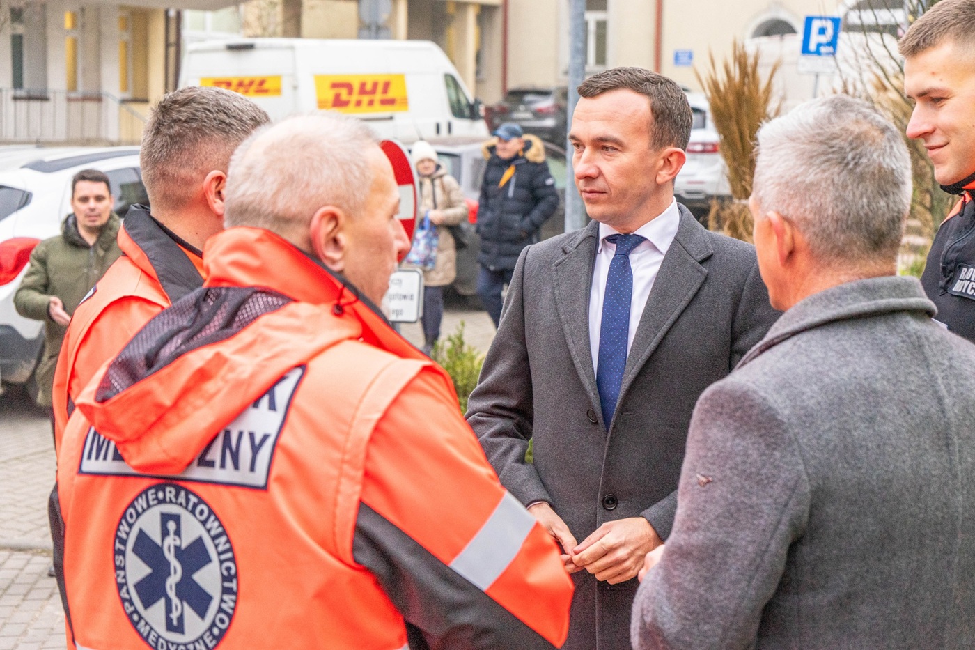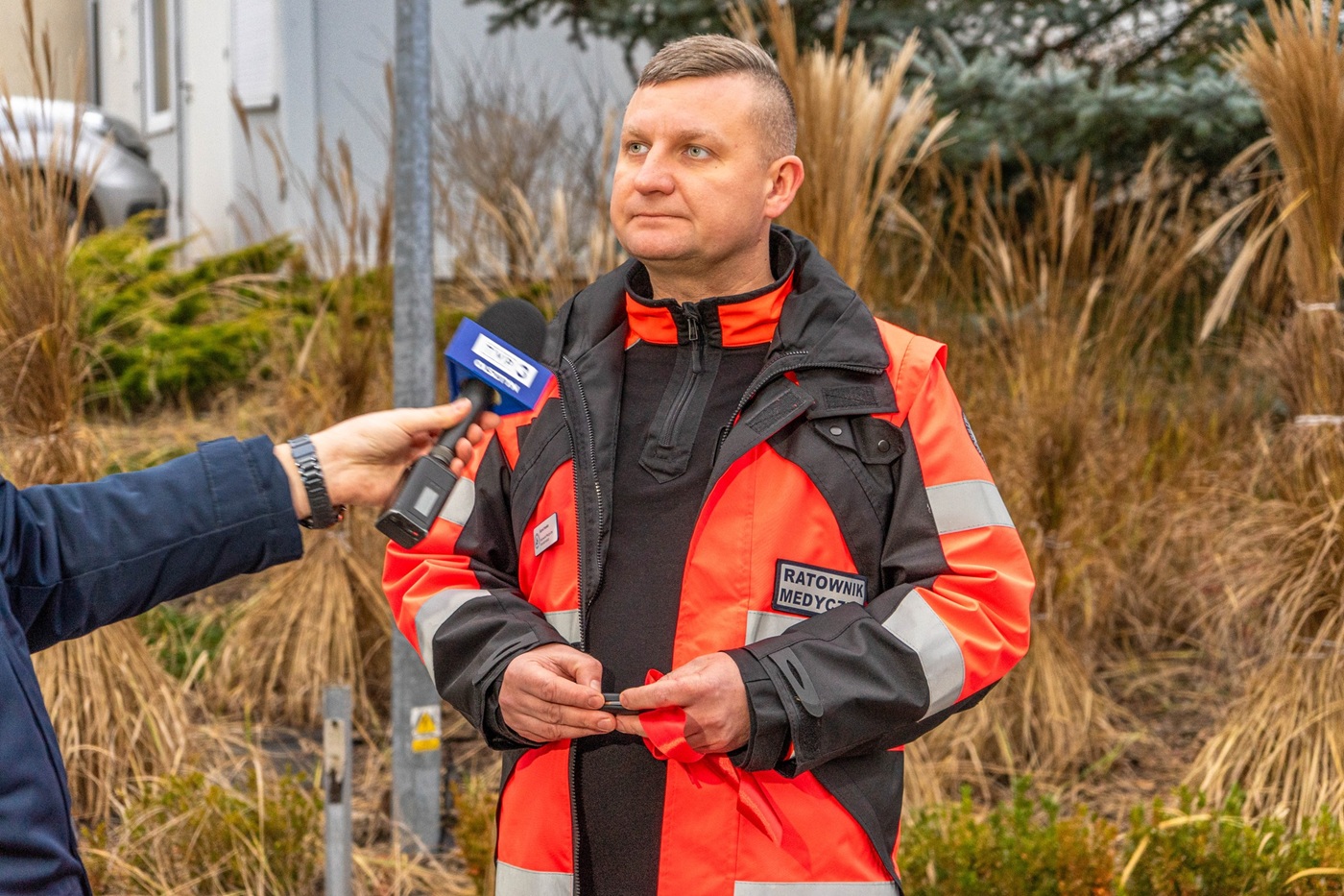 Dzisiaj odbyło się oficjalne przekazanie kluczyków do nowego pojazdu ratunkowego. Trafiły one najpierw na ręce dyrektora szpitala, a następnie przekazano je Karolowi Hasce – koordynatorowi zespołów ratownictwa medycznego.