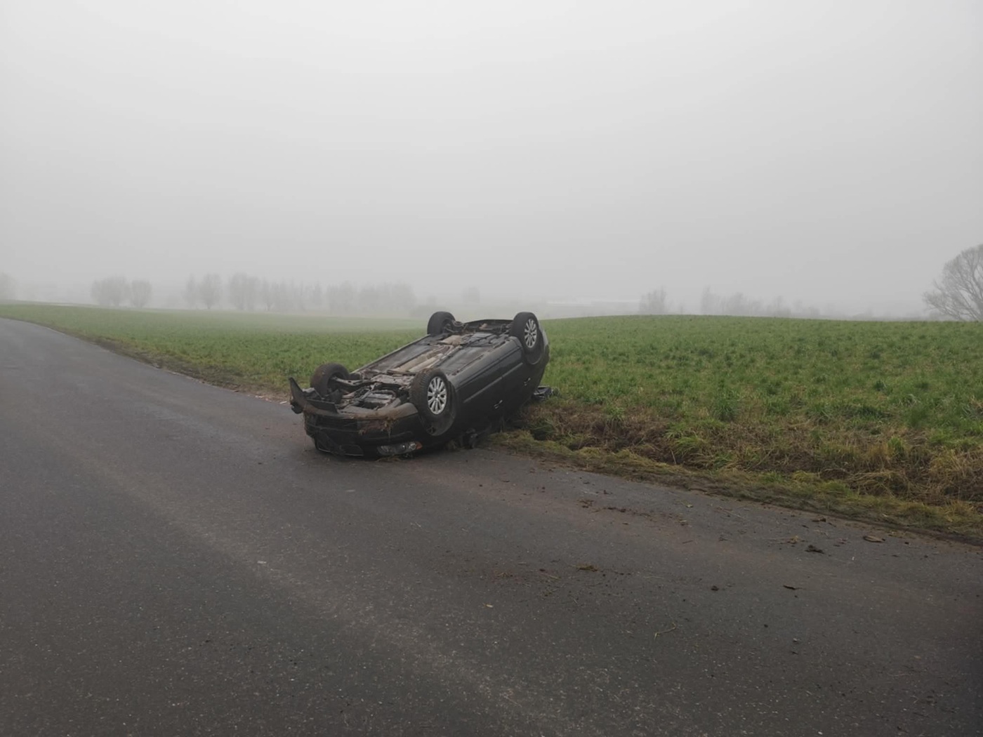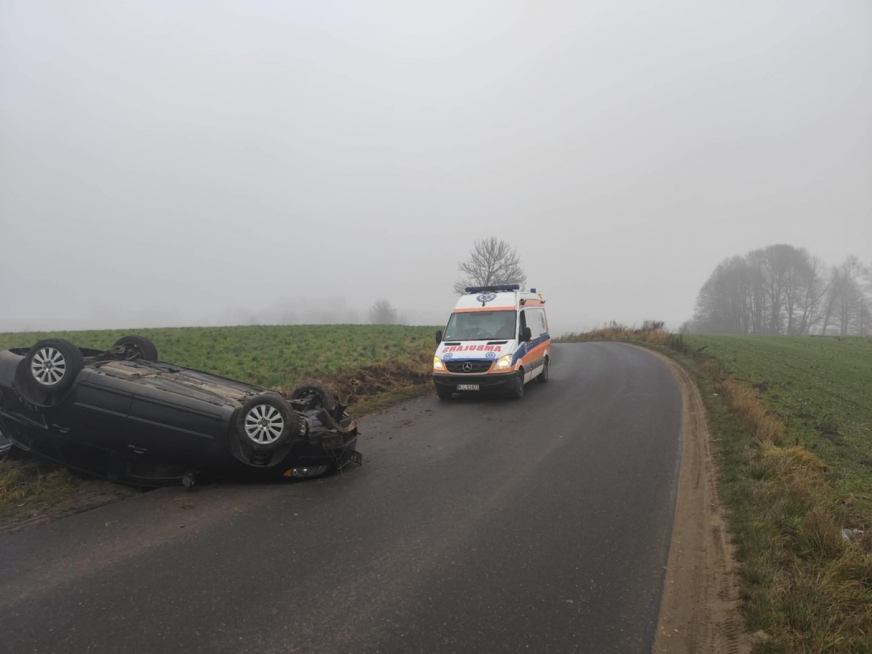 Przed godziną 14:00 na drodze między miejscowościami Radomno i Chrośle w gminie Nowe Miasto Lubawskie doszło do groźnie wyglądającej wywrotki auta na dach. Chociaż miało miejsce dachowanie, na szczęście nikt poważnie nie ucierpiał.