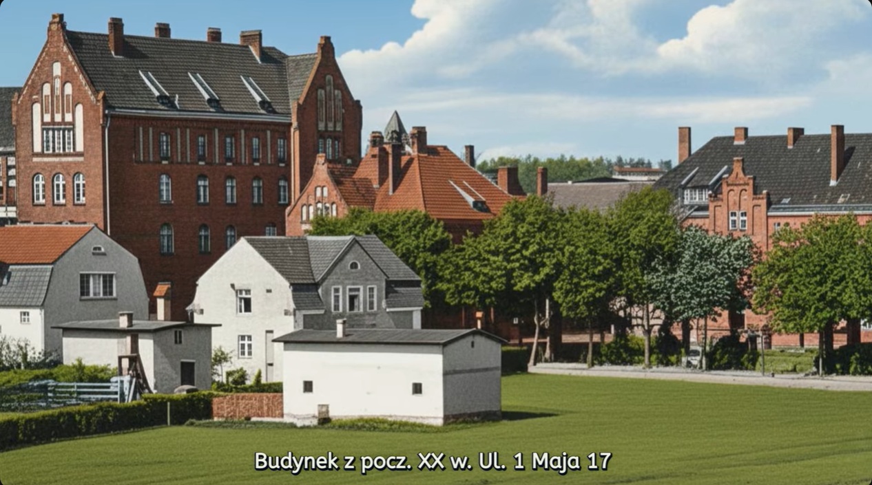 I jeszcze jedna niespodzianka z ulicy 1 Maja – jeszcze jedno rzadko widywane zdjęcie. To z kolei budynek z dzisiejszym adresem: ulica 1 Maja 17. Ten budynek jest w dobrym stanie, był remontowany, do dziś pozostaje ujęty w miejskiej ewidencji zabytków.