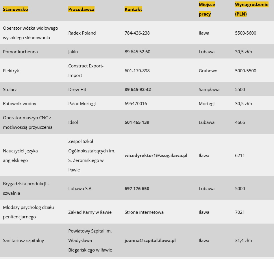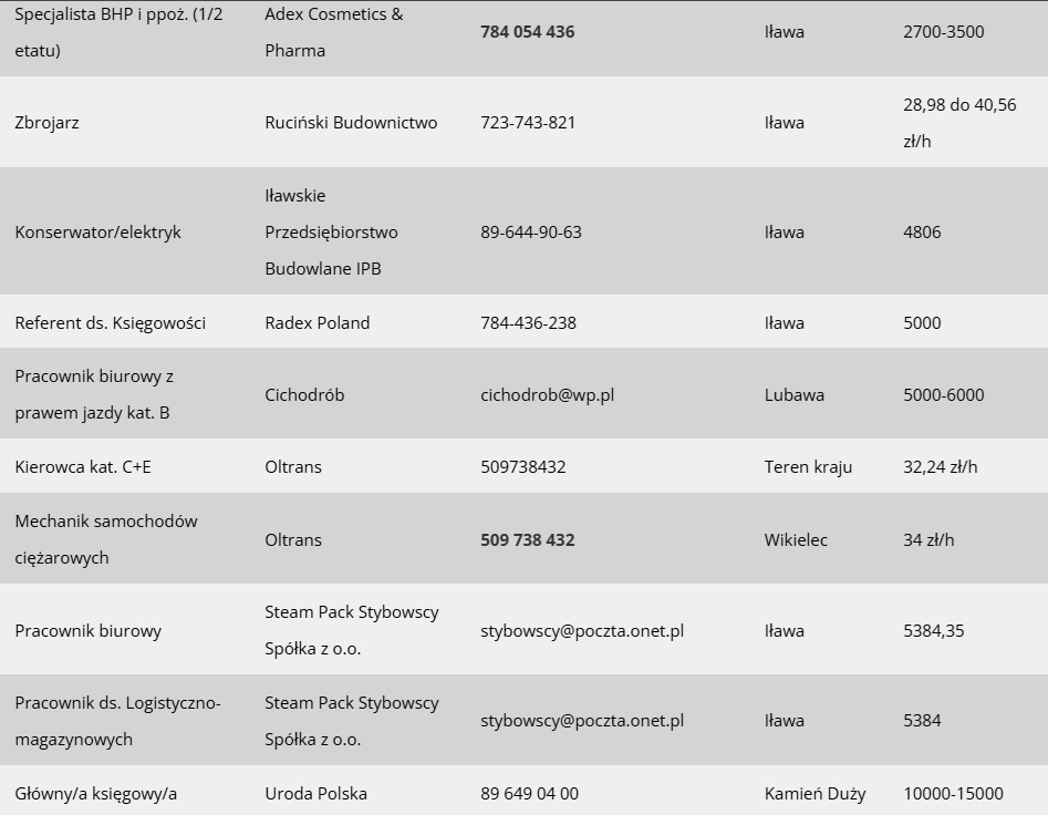 Jak co poniedziałek mamy dla Was przegląd najnowszych ofert pracy dostępnych w Iławie i w powiecie. Tym razem jest ich 20. Oferty pochodzą z bazy Powiatowego Urzędu Pracy w Iławie, z ostatnich 7 dni.