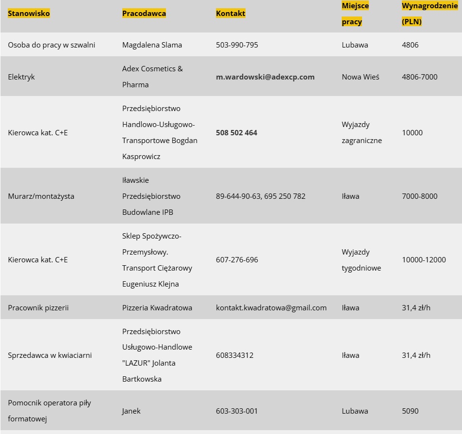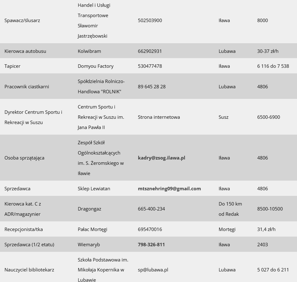 Jak co poniedziałek mamy dla Was przegląd najnowszych ofert pracy dostępnych w Iławie i w powiecie. Tym razem jest ich ponad 30. Oferty pochodzą z bazy Powiatowego Urzędu Pracy w Iławie, z ostatnich 7 dni.