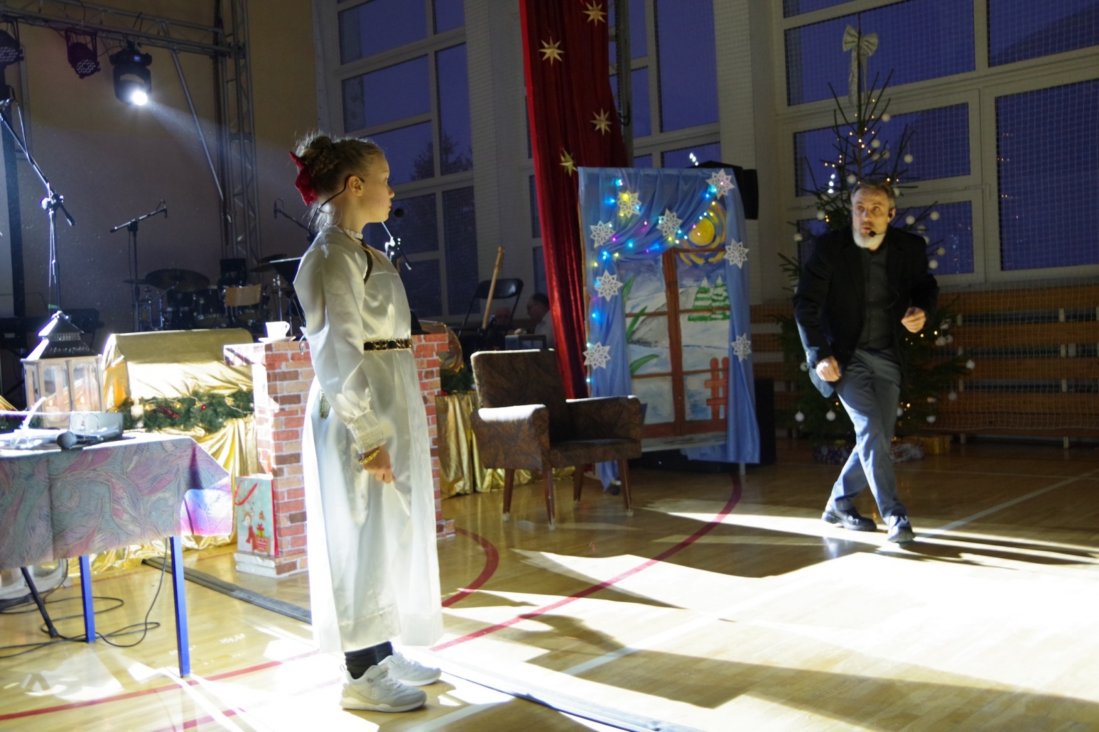 Nie zabrakło także części artystycznej przygotowanej przez szkołę. Uczniowie zaprezentowali przedstawienie „Opowieść wigilijna”, które przypomniało o uniwersalnych wartościach płynących z tradycji bożonarodzeniowej, a całość dopełnił pokaz taneczny, wprowadzający widzów w radosny, noworoczny nastrój.