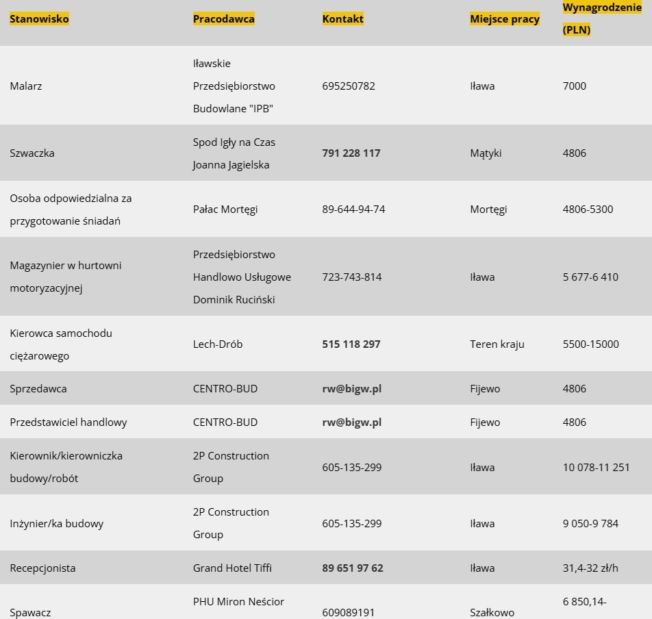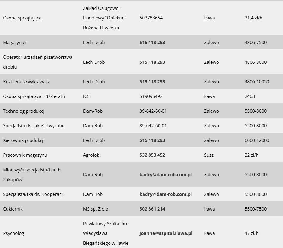 Jak co poniedziałek mamy dla Was przegląd najnowszych ofert pracy dostępnych w Iławie i w powiecie. Tym razem jest ich prawie 40. Oferty pochodzą z bazy Powiatowego Urzędu Pracy w Iławie, z ostatnich 7 dni.