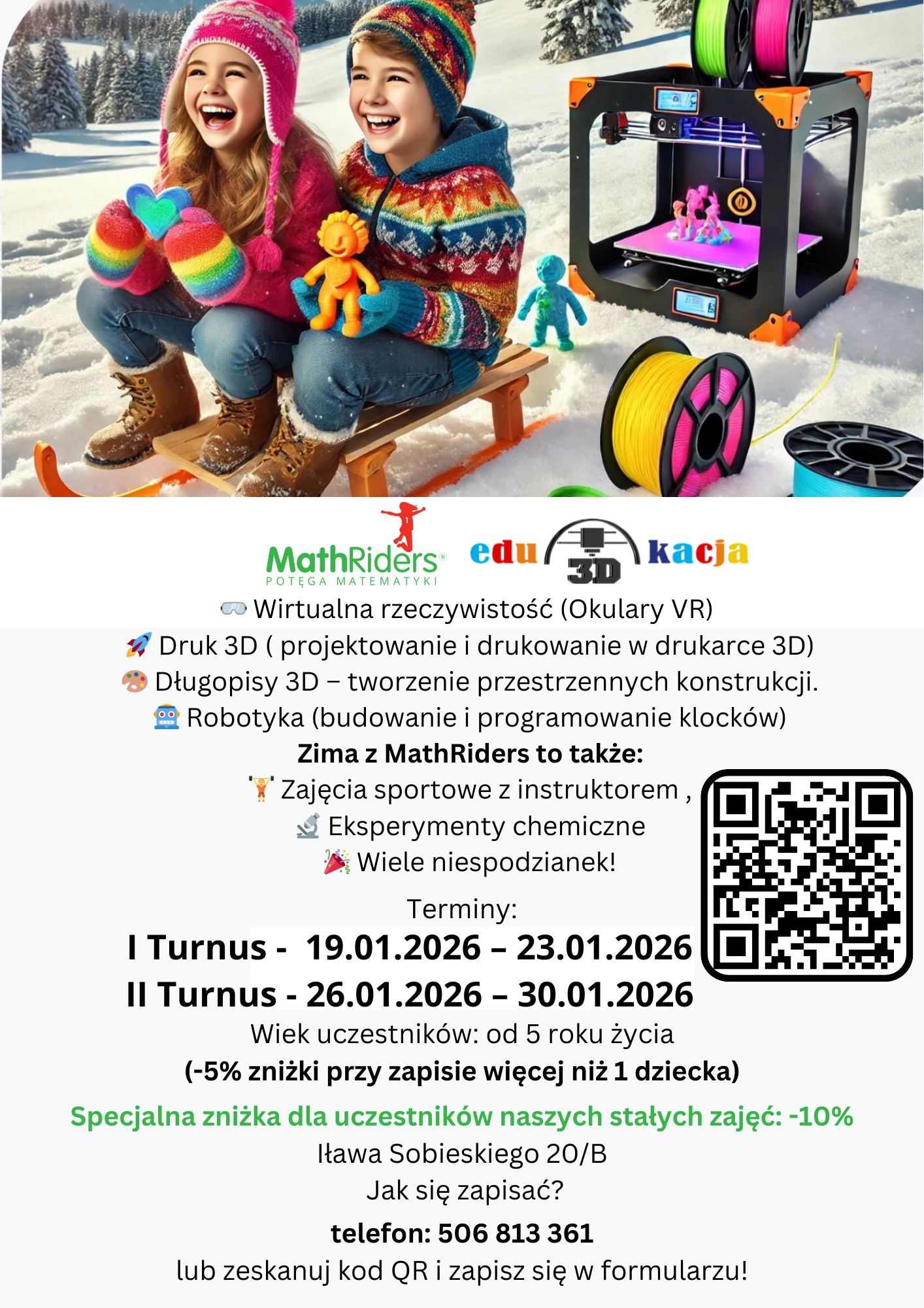 A może chcecie zgłębić technologię 3D? "Zima z Mathriders" to fascynujące eksperymenty, ale też zajęcia sportowe i wiele niespodzianek!