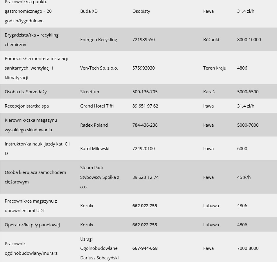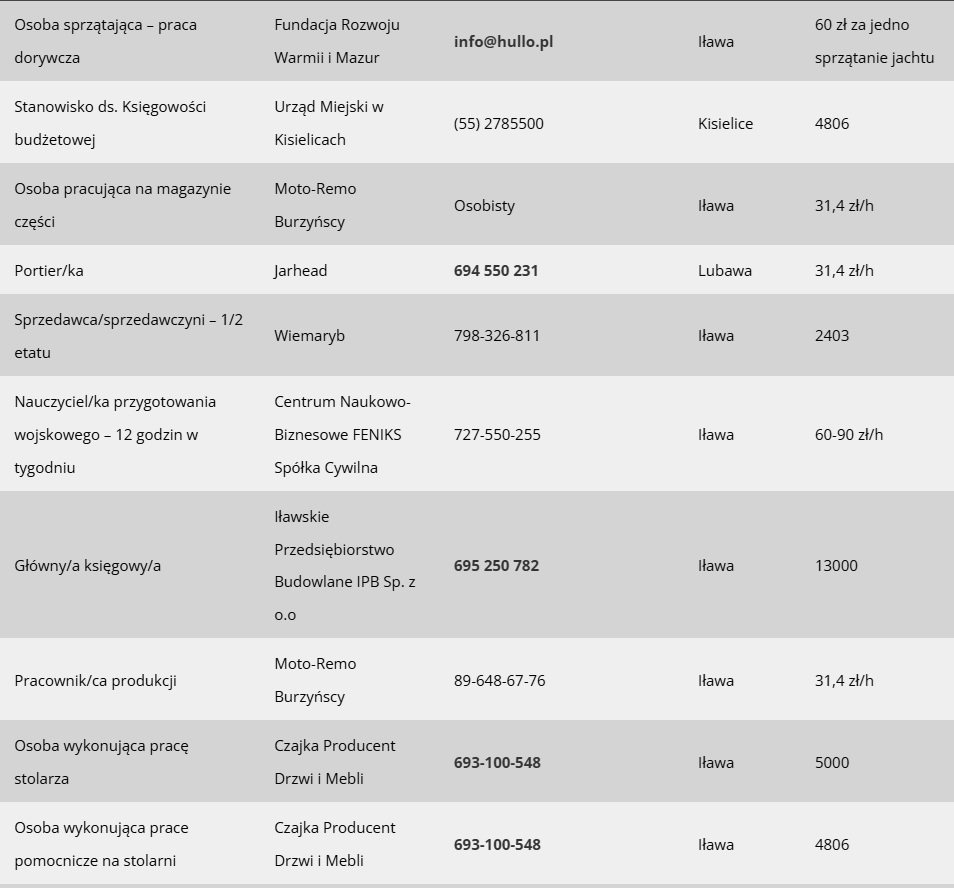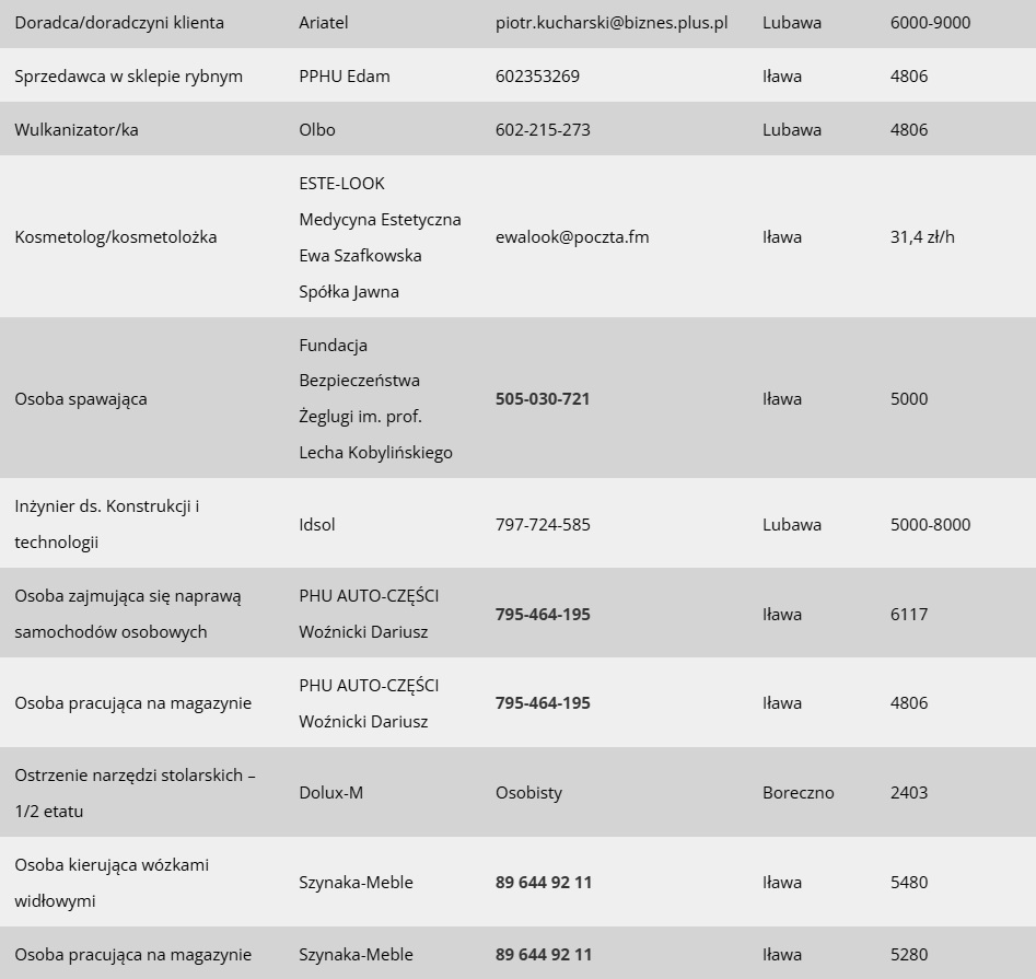 Dziś prezentujemy Wam prawie 50 nowych ofert pracy, jakie w ciągu minionego tygodnia pojawiły się w bazie Powiatowego Urzędu Pracy w Iławie. Zapraszamy wszystkich poszukujących zatrudnienia w Iławie i powiecie iławskim do zapoznania się ze szczegółami.