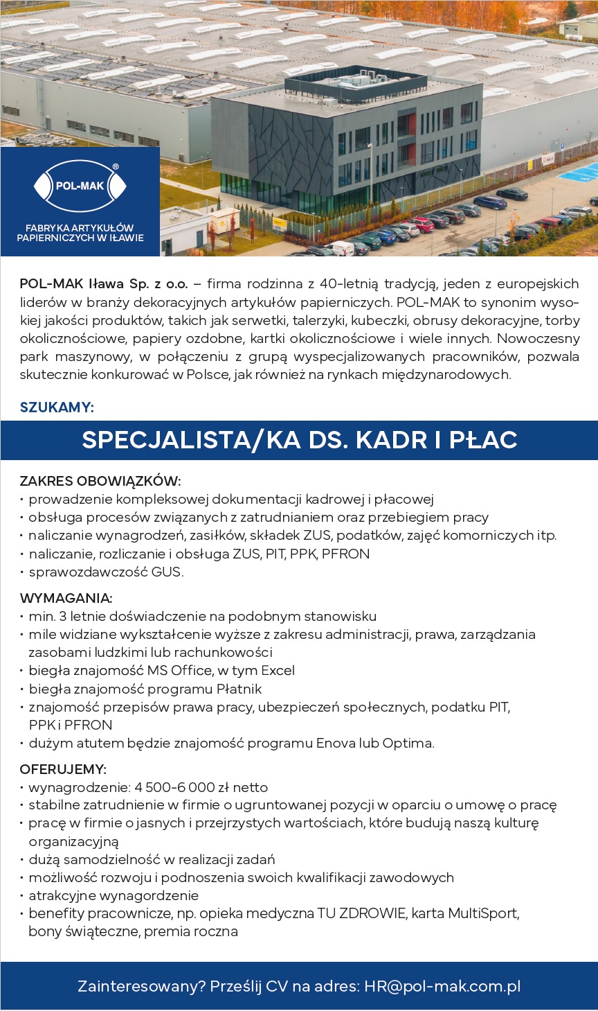Zainteresowany/a? Prześlij swoje CV na adres: HR@pol-mak.com.pl