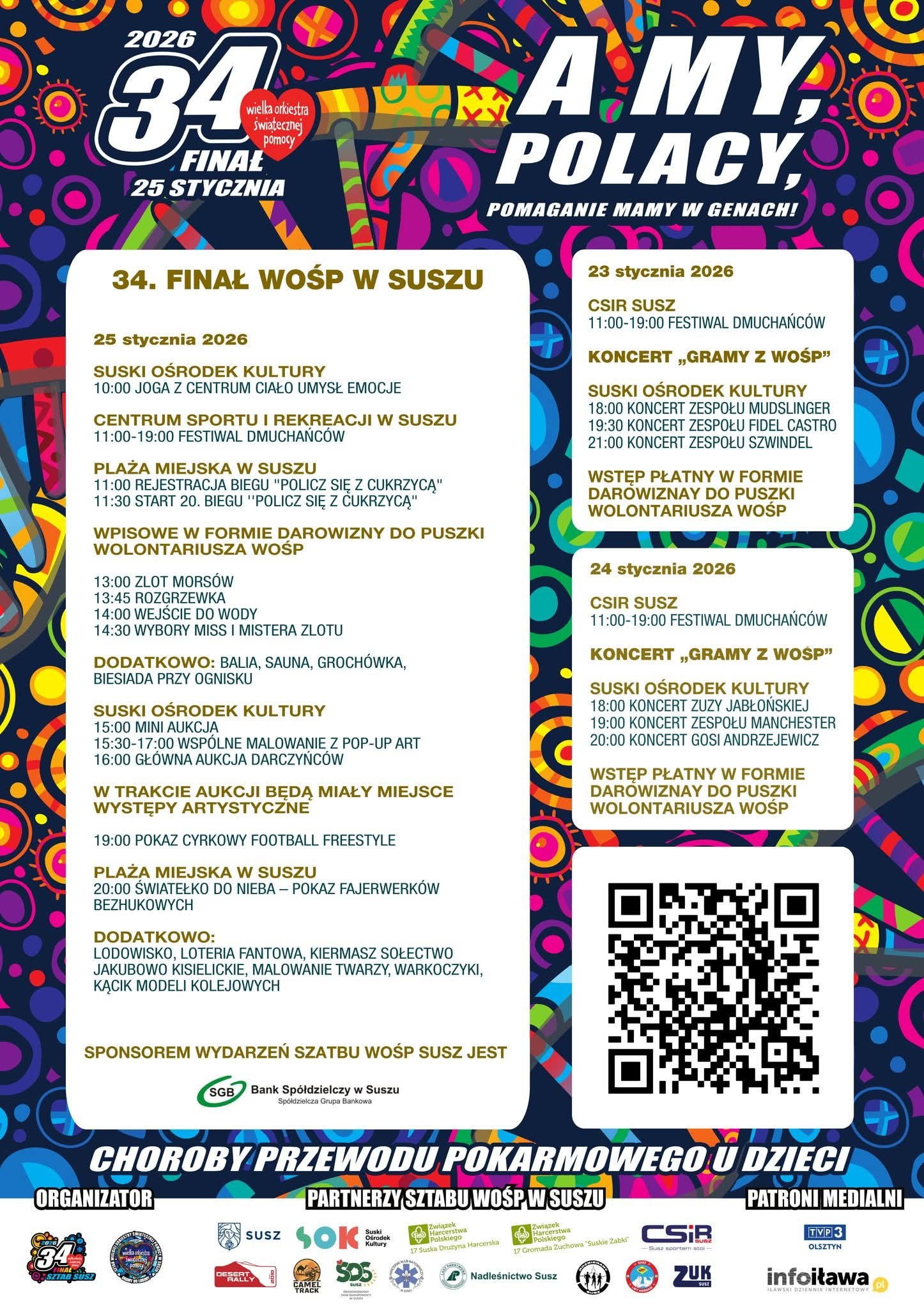 Do zobaczenia podczas 34. Finału Wielkiej Orkiestry Świątecznej Pomocy w Suszu!
