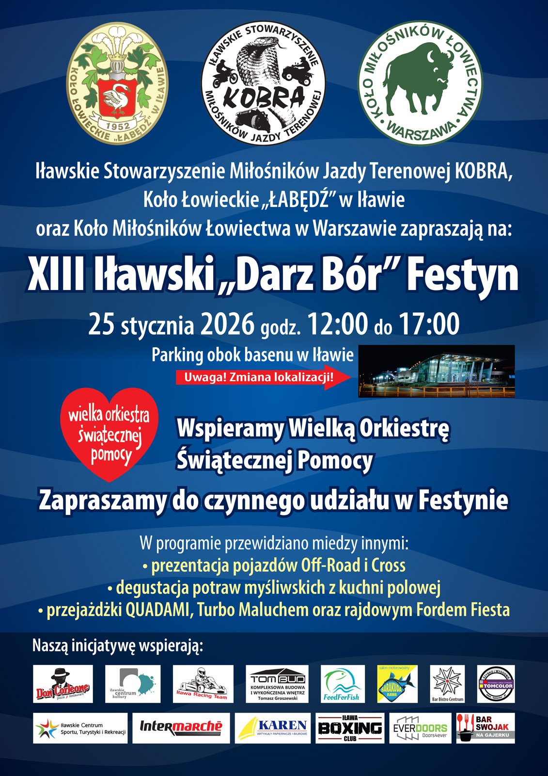Już 25 stycznia Iława ponownie stanie się miejscem wyjątkowego spotkania ludzi z pasją, wielkimi sercami i chęcią niesienia pomocy. Przed nami XIII Iławski „Darz Bór” Festyn – wydarzenie, bez którego trudno dziś wyobrazić sobie iławski finał Wielkiej Orkiestry Świątecznej Pomocy.