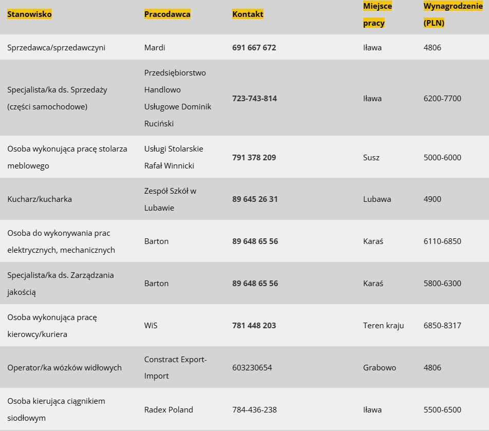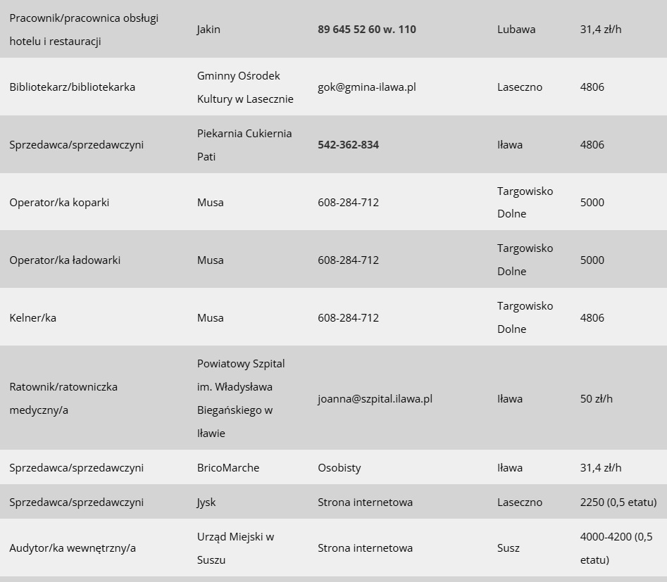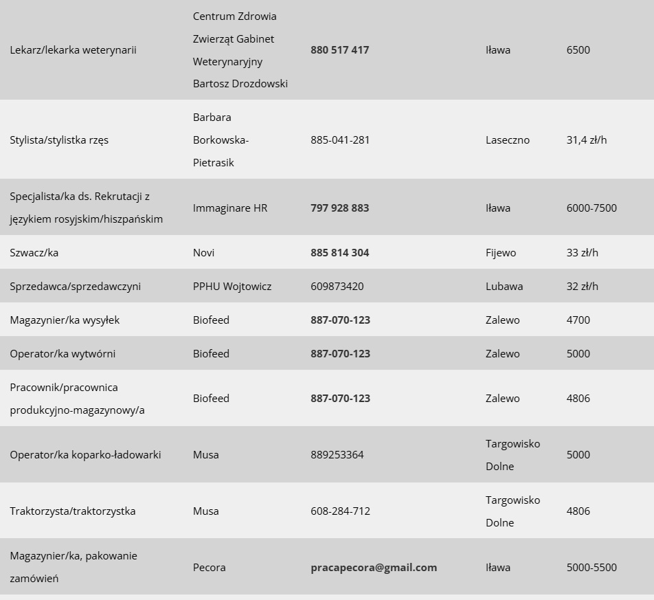 Dziś prezentujemy Wam prawie 50 nowych ofert pracy, jakie w ciągu minionego tygodnia pojawiły się w bazie Powiatowego Urzędu Pracy w Iławie. Zapraszamy wszystkich poszukujących zatrudnienia w Iławie i powiecie iławskim do zapoznania się ze szczegółami.