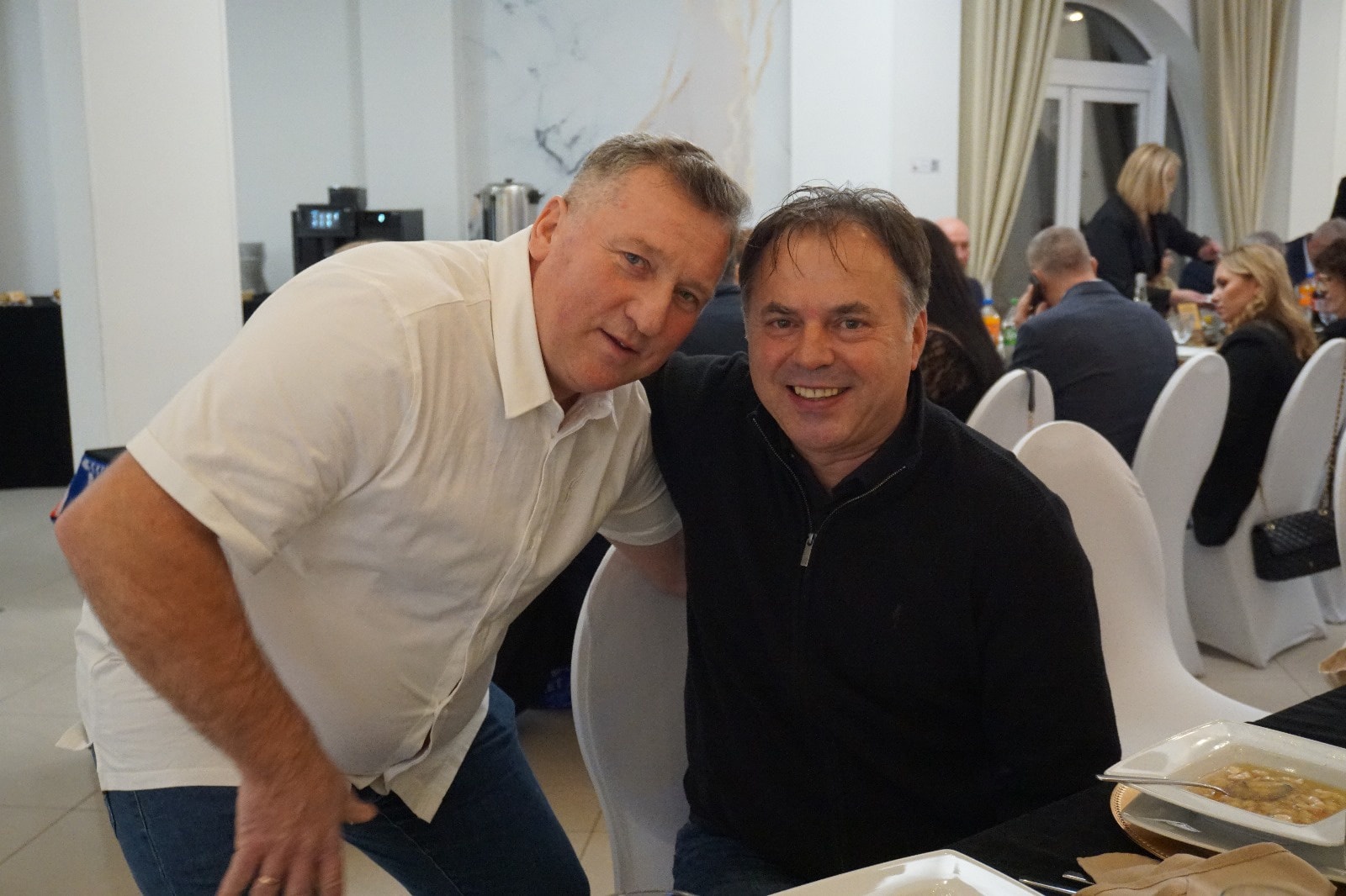 Paweł Pasik (z lewej, obok Marek Witkowski) podczas Wieczoru Legend Jezioraka Iława zorganizowanego z okazji 80-lecia klubu (fot. Mateusz Partyga)