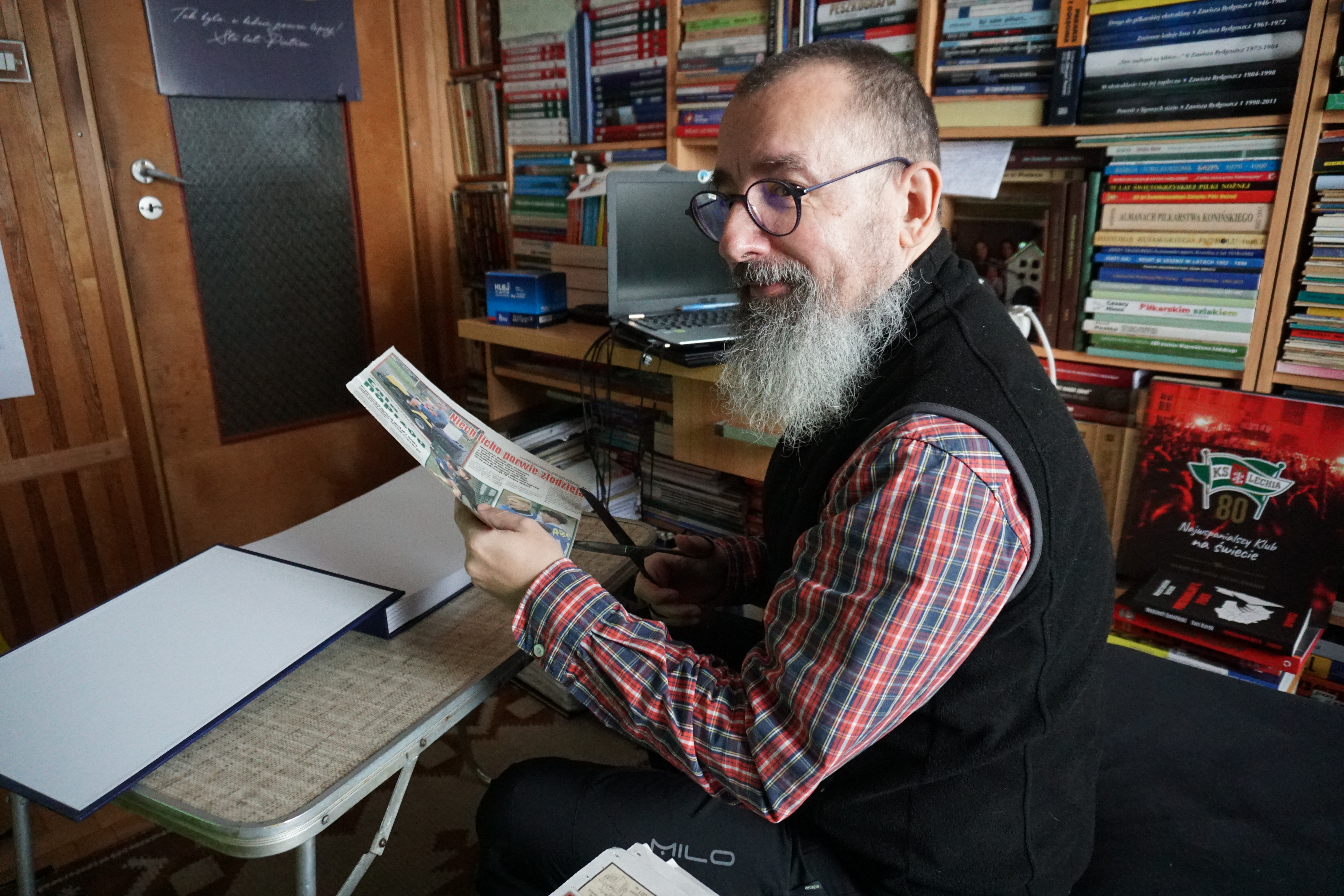 W reaktywacją kronik i wyborem ich wykonawcy trafiło idealnie i pewnie nieprzypadkowo, bowiem pan Piotr zbierał wszelkie pamiątki związane z Biało-niebieskimi. Dosłownie – wszystko! I też prawie wszystko trafiało i trafia do kronik.