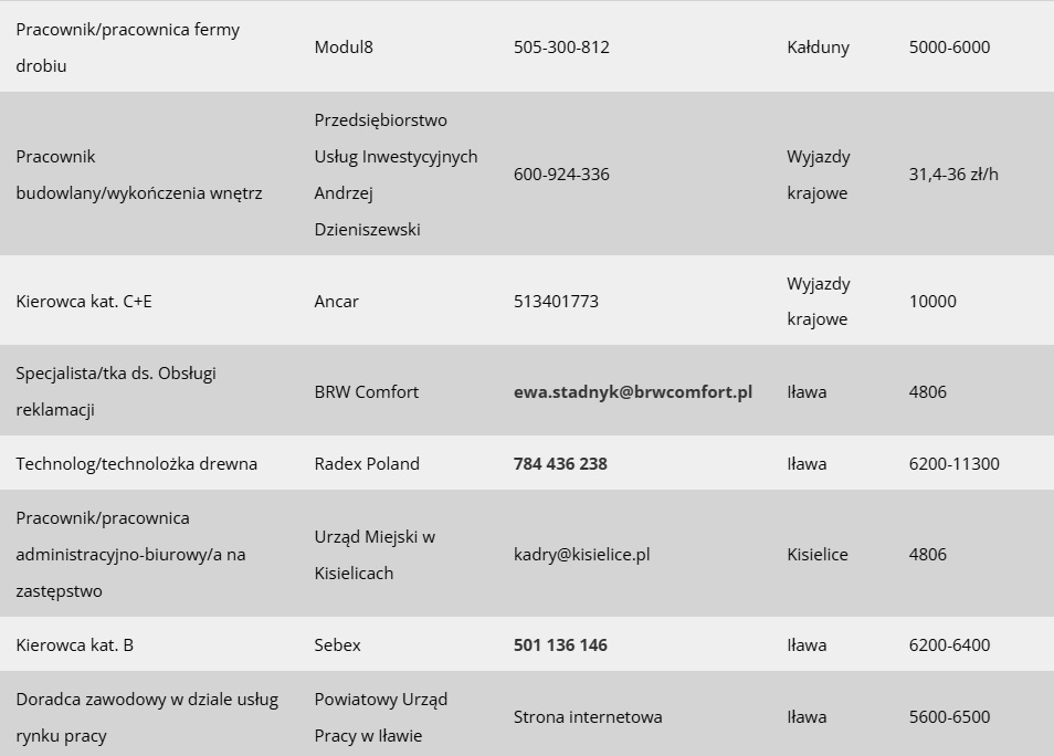 Dziś prezentujemy Wam prawie 30 nowych ofert pracy, jakie w ciągu minionego tygodnia pojawiły się w bazie Powiatowego Urzędu Pracy w Iławie. Zapraszamy wszystkich poszukujących zatrudnienia w Iławie i powiecie iławskim do zapoznania się ze szczegółami.