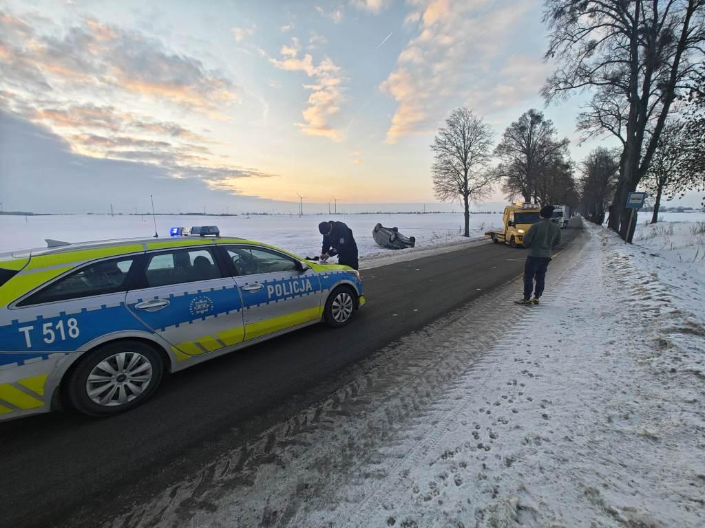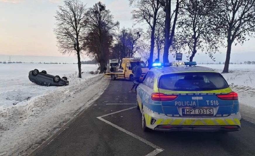 Tego samego dnia, również w piątek, 30 stycznia, doszło do kolejnego niebezpiecznego zdarzenia na drogach powiatu. W gminie Susz kierujący samochodem marki Volvo 35-letni mężczyzna nie dostosował prędkości do panujących warunków ruchu. Stracił panowanie nad pojazdem, w wyniku czego doszło do dachowania.