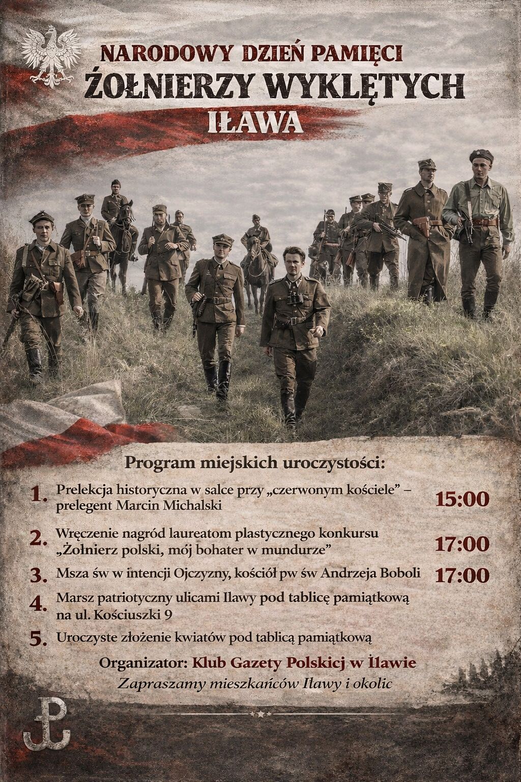 1 marca w Iławie odbędą się uroczystości związane z Narodowym Dniem Pamięci Żołnierzy Wyklętych. Program wydarzeń obejmuje zarówno elementy edukacyjne, jak i część religijną oraz patriotyczną, skierowaną do mieszkańców miasta i okolic.