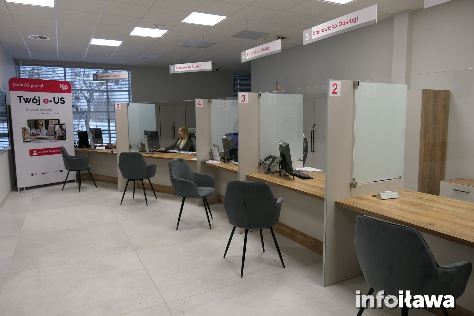 - Obecnie do dyspozycji klientów jest 6 stanowisk obsługi. Na co dzień czynne są trzy, a pozostałe uruchamiane będą w okresach większego ruchu, na przykład podczas rozliczeń rocznych.