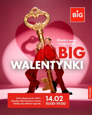14 lutego park handlowy BIG Ostróda zaprasza klientów na wyjątkową walentynkową akcję, która połączy zakupy z dobrą zabawą i szansą na zdobycie atrakcyjnych nagród!