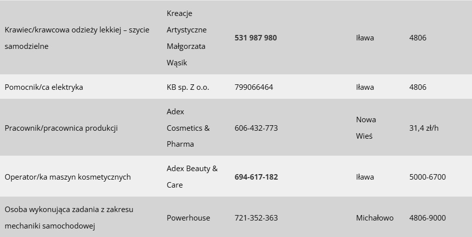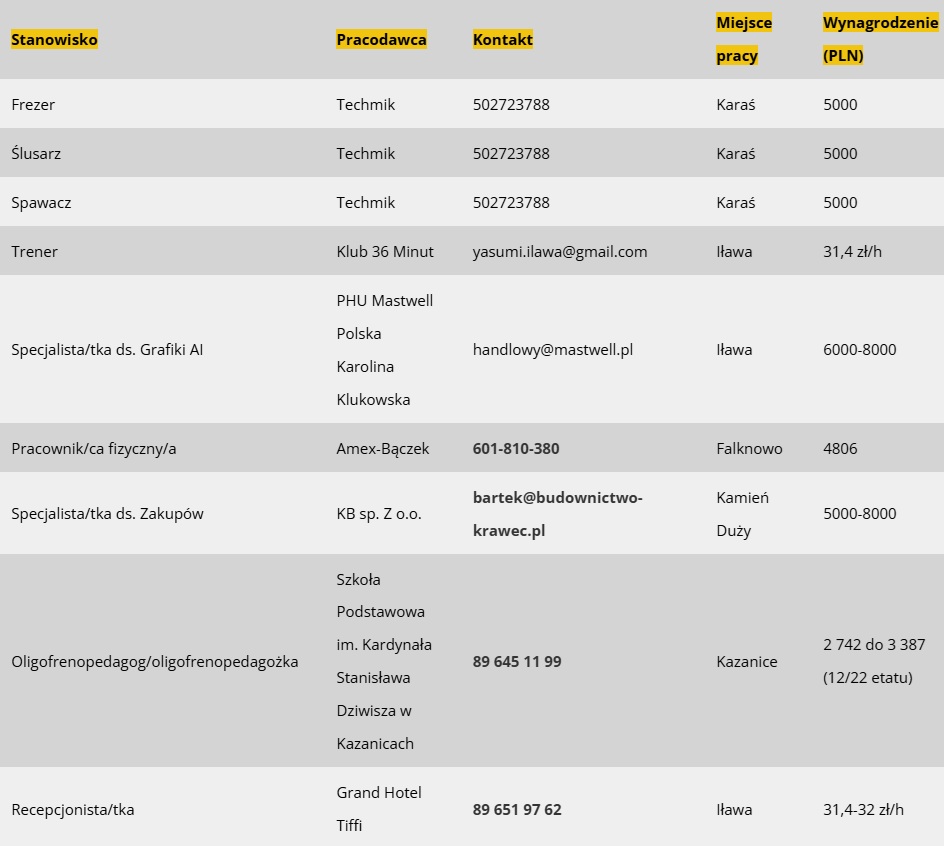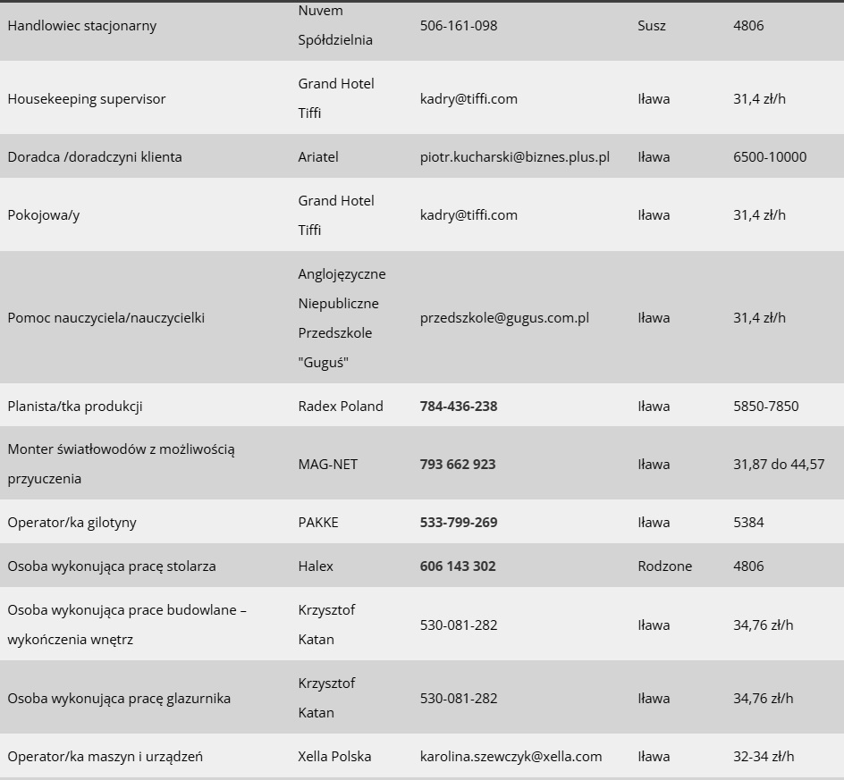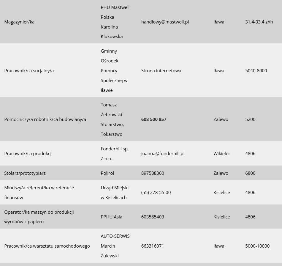Dziś prezentujemy Wam 40 nowych ofert pracy, jakie w ciągu minionego tygodnia pojawiły się w bazie Powiatowego Urzędu Pracy w Iławie. Zapraszamy wszystkich poszukujących zatrudnienia w Iławie i powiecie iławskim do zapoznania się ze szczegółami.
