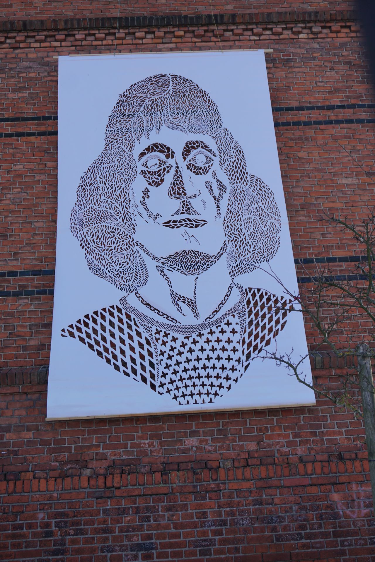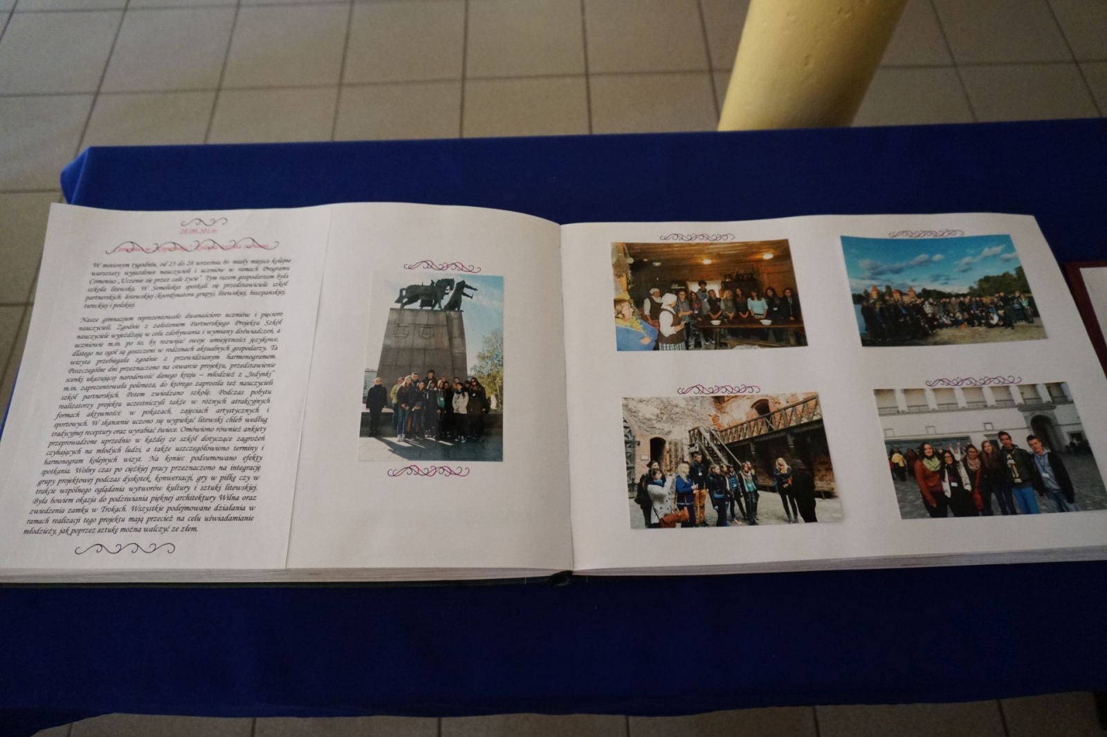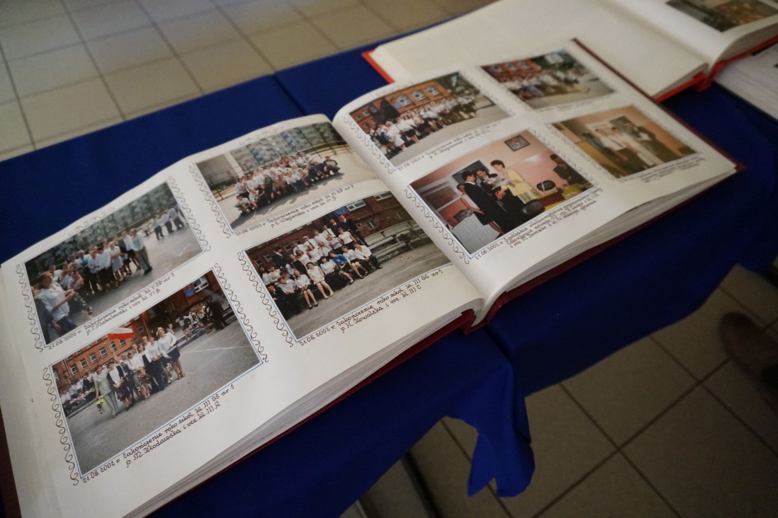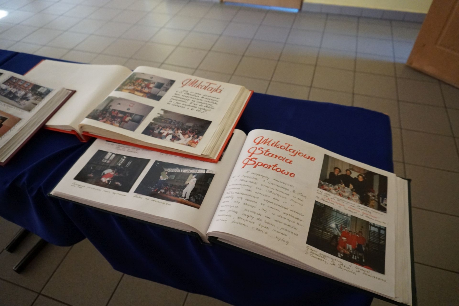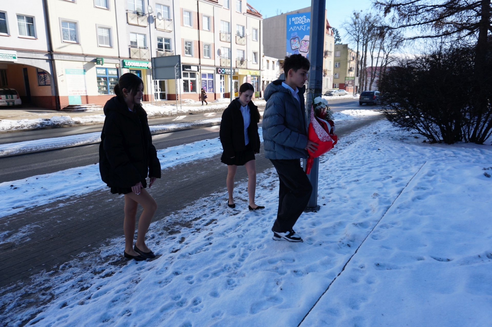 Gdy trwała część oficjalna, udaliśmy się wraz z kolejnym pocztem złożonym z uczniów SP1 pod pomnik patrona szkoły, Mikołaja Kopernika, który stoi tuż przed budynkiem i jest dobrze widoczny z drogi krajowej nr 16. Poza tym, jego podobizna na dzisiejszą uroczystość pojawiła się także na zachodniej ścianie Jedynki, od strony ul. Królowej Jadwigi. Po złożeniu kwiatów - szybki powrót do auli, gdzie trwały kolejne występy. Zajrzeliśmy też do szkolnych kronik.
