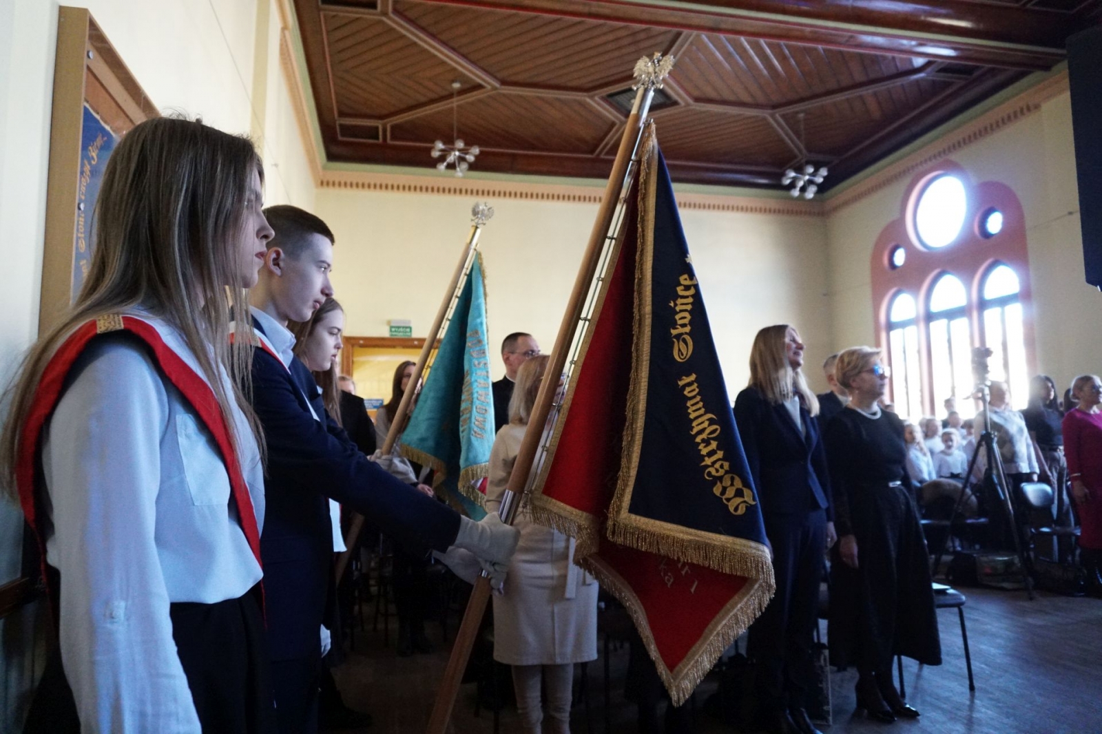 Dzisiejsza uroczystość, którą rozpoczęła aktualna dyrektorka szkoły, Beata Niksa-Żubertowska (piastuje to stanowisko od 2021 roku), miała charakter uroczysty (nie zabrakło oczywiście wprowadzenie sztandaru szkoły, była także delegacja ze sztandarem z zaprzyjaźnionej z Jedynką szkoły podstawowej w Biskupcu, odegrano hymn Polski – wszystko na nagraniu poniżej), aczkolwiek dobrego humoru i występów artystycznych również doświadczyliśmy. A utwór Zbigniewa Wodockiego„Lubię wracać tam gdzie byłem”, wykonany przez zespół wokalny z „Czerwonej szkoły”, był chyba specjalną dedykacją dla jej absolwentów, którzy pojawili się na dzisiejszej uroczystości.