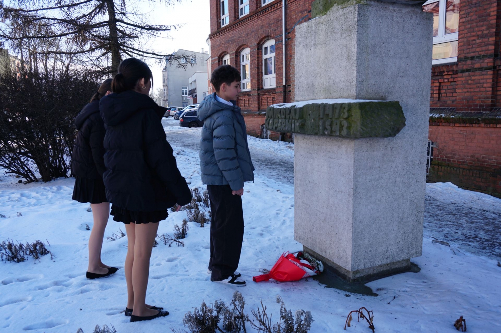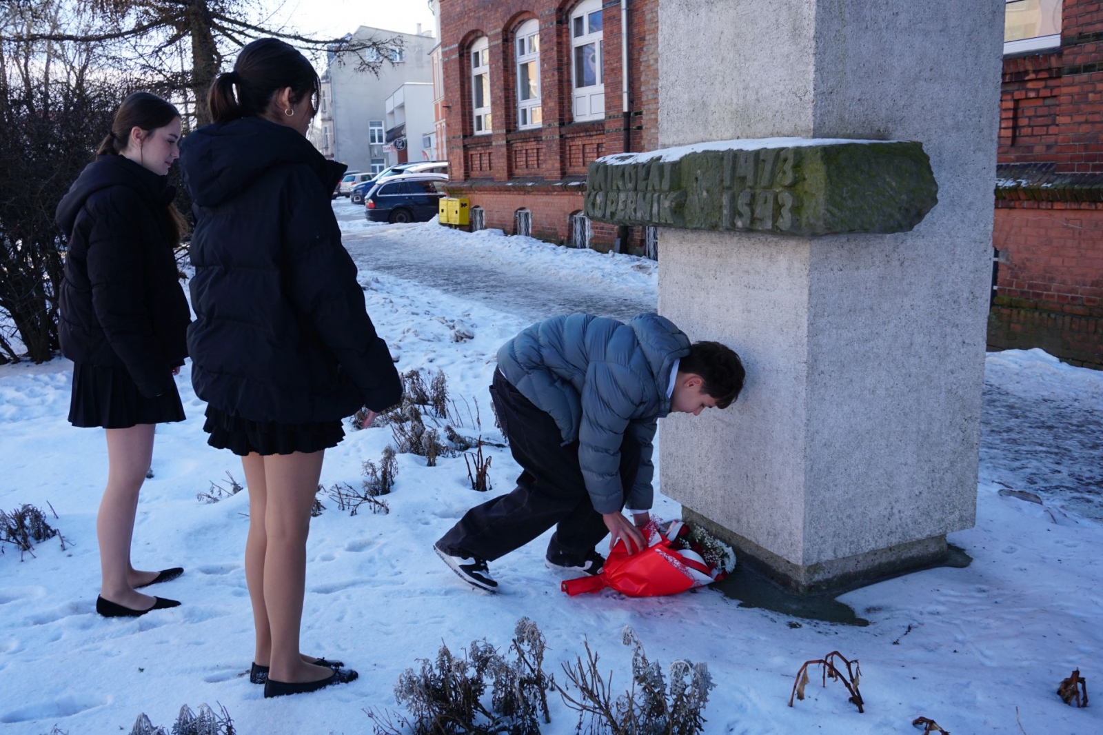 Złożenie kwiatów pod pomnikiem Mikołaja Kopernika (Fot. Mateusz Partyga)