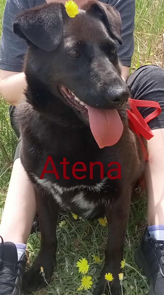 Atena, ta dama po prostu wie, czego chce. Spokojna, nienachalna, zdecydowana. Bardzo lubi towarzystwo człowieka, spacery, głaskanie. Zna podstawowe komendy, pięknie chodzi na smyczy. Stosunek do innych psów ma różny, traktuje je wybiórczo. Jej przekleństwem jest to, że jest czarna, a tym samym "niewidoczna". Tak jest z psami tej maści, bardzo rzadko trafiają do adopcji. Możemy jednak zapewnić, że to najmądrzejsza, jak samo imię wskazuje, dziewczyna w schronisku.