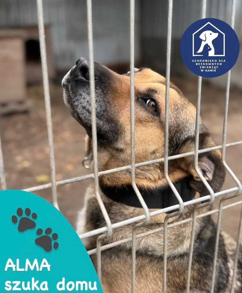 Alma to piękna, postawna sunia, silna i zdecydowana. Potrzebuje opiekuna, który zrozumie jej potrzeby i da jej przestrzeń do tego, żeby zapragnęła bliskości człowieka, na którego czeka już kilka lat. Trafiła do schroniska prawdopodobnie z synem, Hazel został adoptowany, a ona została sama. Niestety Alma nie przepada za innymi psami, dlatego powinna być jedynaczką.