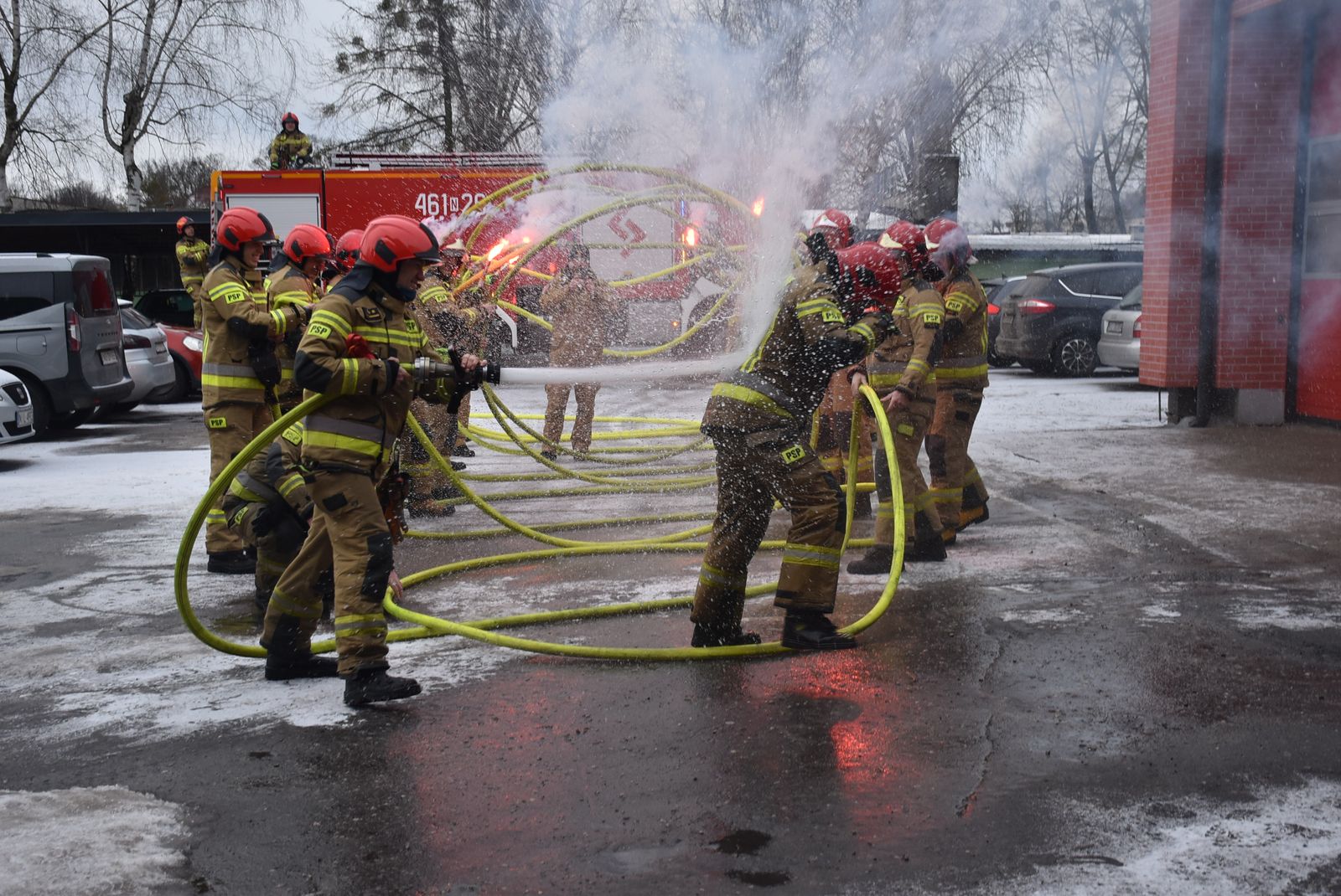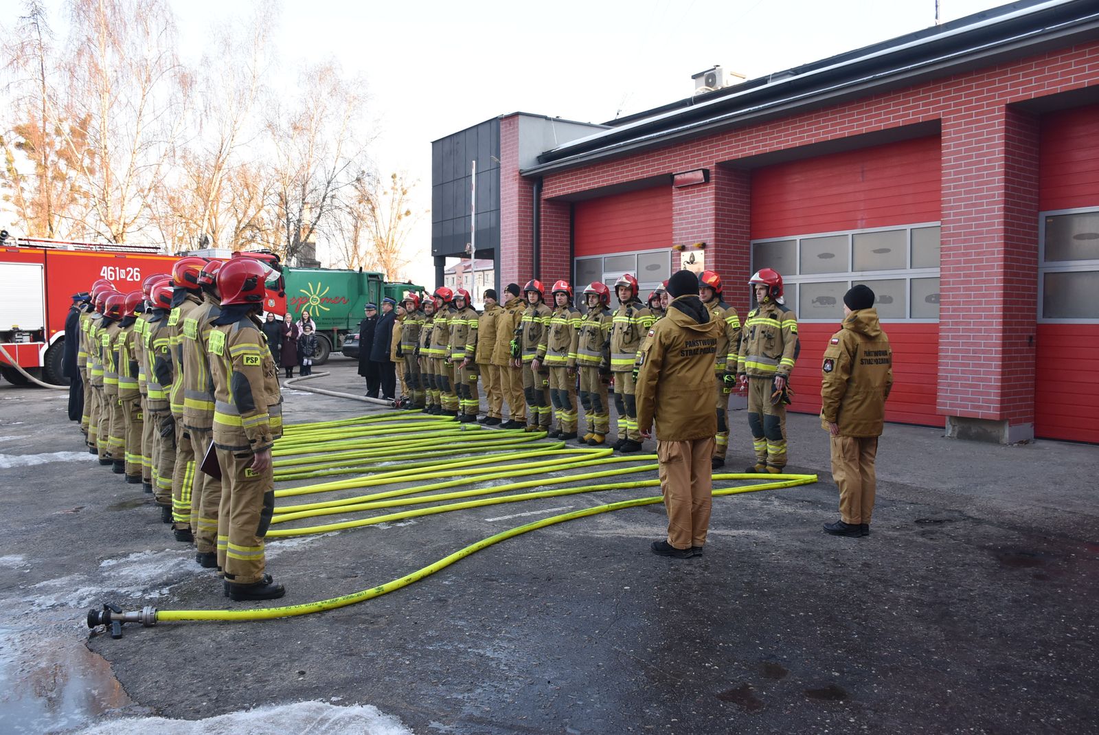 W dniach 25 oraz 26 lutego o godz. 8:00 miały również miejsce uroczyste zmiany służby w podziale bojowym iławskiej Jednostki Ratowniczo – Gaśniczej, podczas których wymienieni funkcjonariusze po raz ostatni zdali swoje obowiązki służbowe. W ramach podziękowania za wspólne lata służby wszyscy strażacy iławskiej JRG przygotowali tradycyjne pożegnanie w formie szpaleru z wykorzystaniem węża pożarniczego zakończonego kąpielą w zbiorniku z wodą. Na koniec wykonano wspólne pamiątkowe zdjęcia.