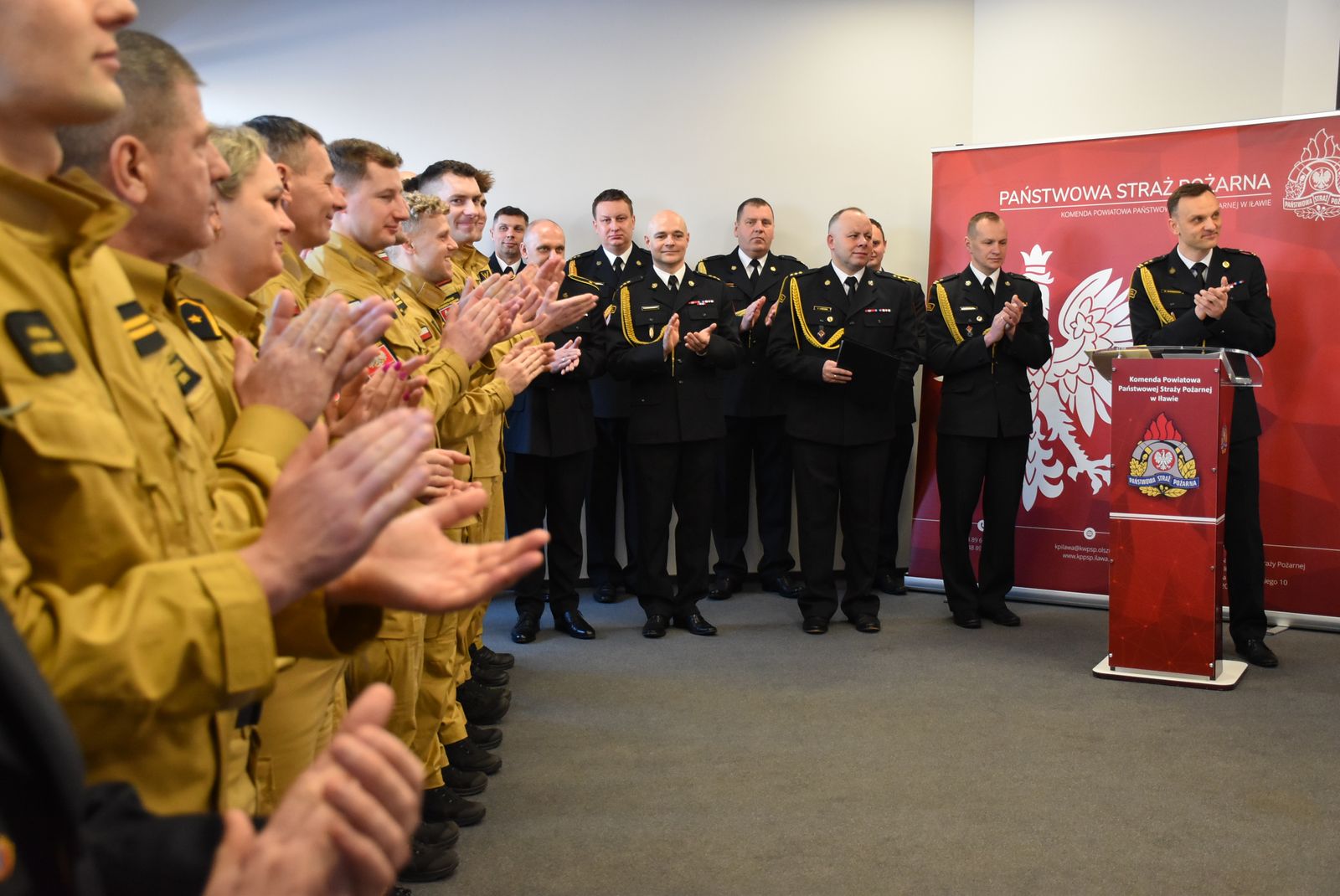 Podczas uroczystości strażakom towarzyszyli koleżanki i koledzy z iławskiej komendy, którzy wraz z komendantem powiatowym bryg. Marcinem Wiśniewskim na czele złożyli odchodzącym funkcjonariuszom życzenia oraz przekazali upominki na pamiątkę wspólnej służby.