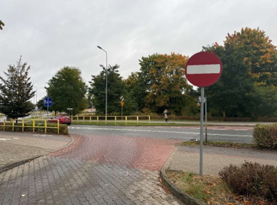 Ulica Biskupska - wyjazd z parkingu basenu w tym miejscu jest obecnie niemożliwy - Iławianin proponuje umożliwienie wyjazdu ze skrętem wyłącznie w prawo i ustąpieniem pierwszeństwa przejazdu. Jak sądzi, zmniejszyłoby to natężenie ruchu na kluczowym pobliskim rondzie na DK-16.