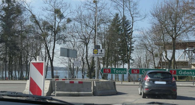 Jak wskazuje Iławianin, przydałoby się rondo! Czytelnik przekonuje, że na początek - tak jak zrobiono to w Ostródzie (zdjęcie poniżej) - można wprowadzić tymczasowe rondo i sprawdzić, czy takie rozwiązanie sprawdzi się w praktyce.