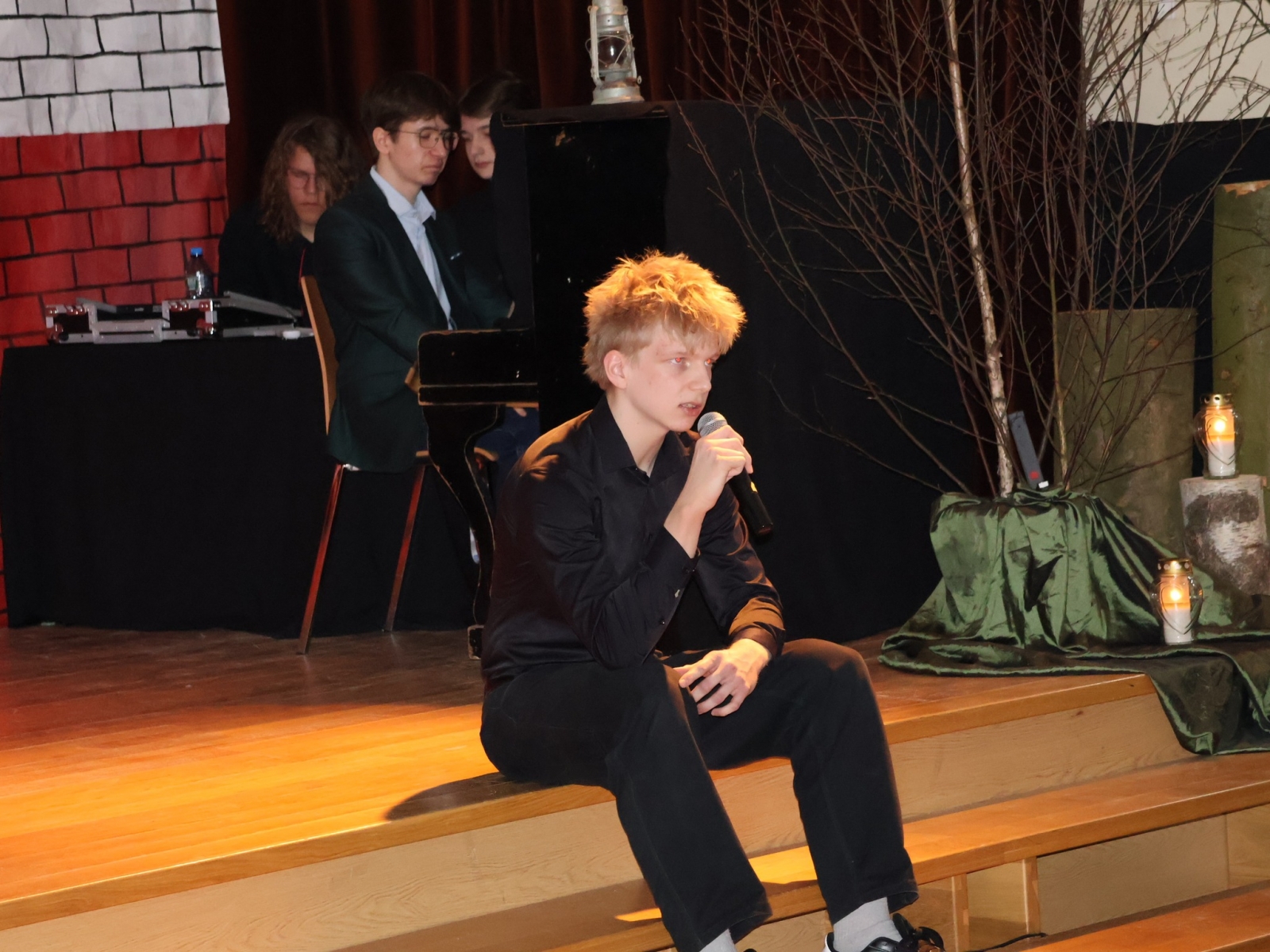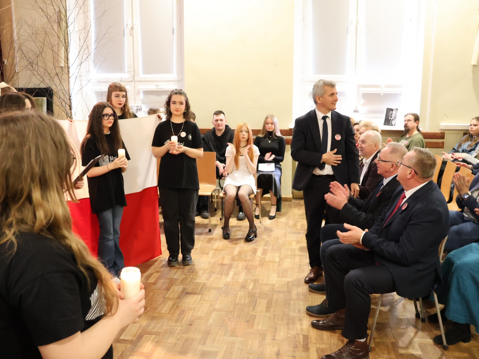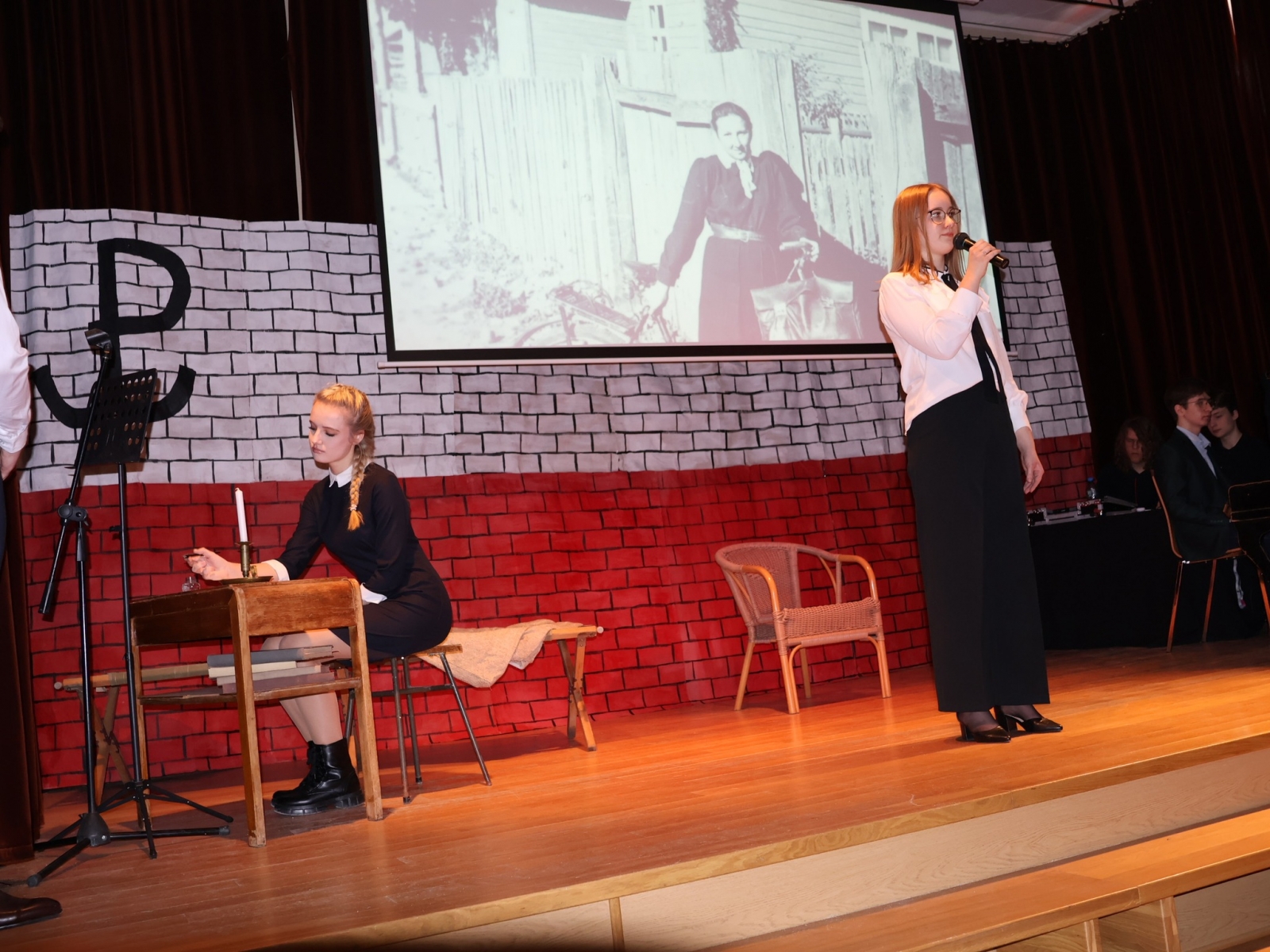 Uczniowie opowiedzieli o losach żołnierzy podziemia po 1945 roku – o wyborach podejmowanych w cieniu nowej władzy, o represjach i cenie, jaką przyszło zapłacić za wierność ideałom. Przedstawienie było oszczędne w środkach, ale mocne w przekazie. W wielu momentach na widowni panowała cisza, która mówiła więcej niż słowa. To była lekcja patriotyzmu przygotowana z wyczuciem i zaangażowaniem.