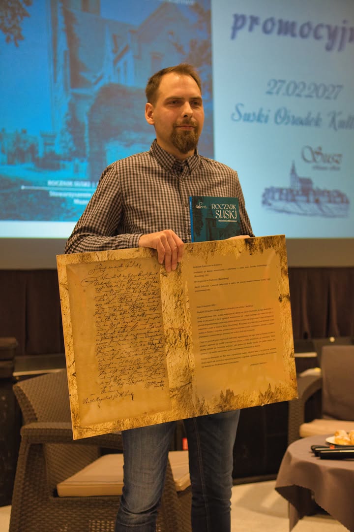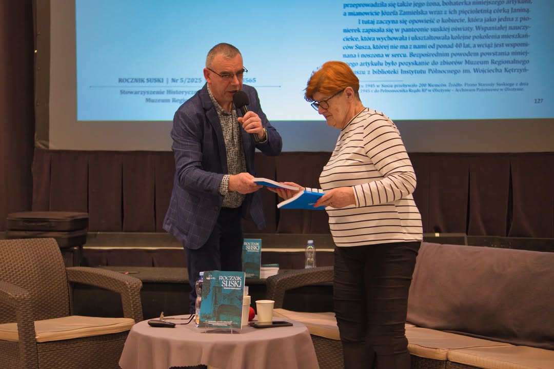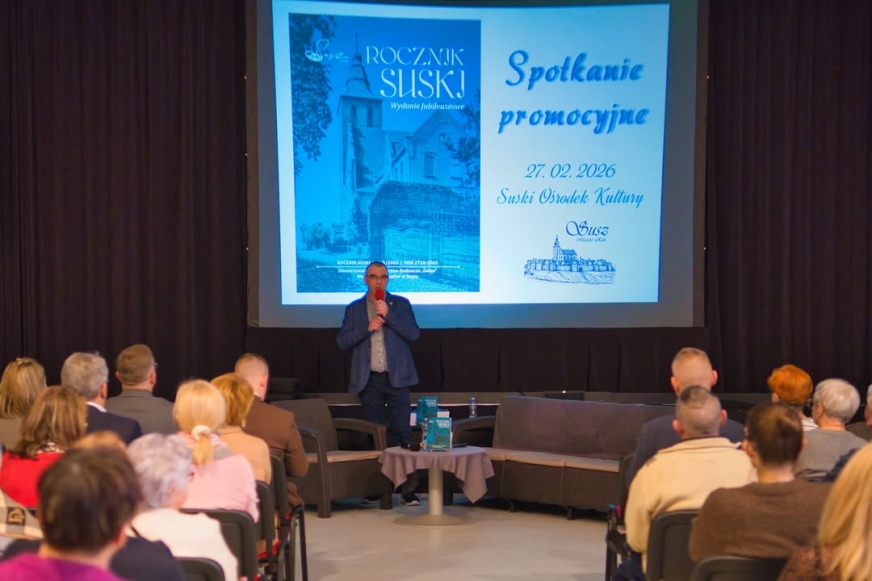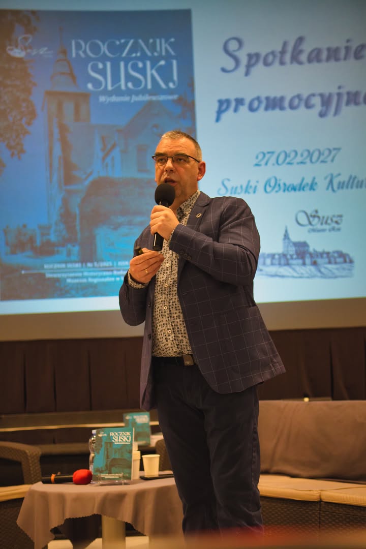 W piątkowe popołudnie sala Suskiego Ośrodka Kultury wypełniła się osobami, którym bliska jest historia i tożsamość miasta oraz regionu. Okazją było spotkanie promocyjne jubileuszowego wydania czasopisma „Rocznik Suski” nr 5/2025, przygotowanego przez Stowarzyszenie Historyczno-Badawcze „Galea” oraz Muzeum Regionalne w Suszu. W wydarzeniu uczestniczyli autorzy, bohaterowie publikacji oraz mieszkańcy zainteresowani historią miasta, a także władze Gminy Susz z burmistrzem Marcinem Mądrym na czele.