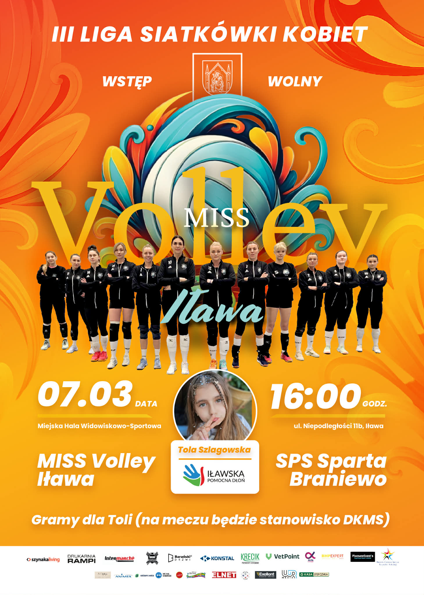 Tym razem siły łączą zespół Miss Volley Iława i Fundacja Iławska Pomocna Dłoń – i zapraszają do iławskiej hali na sobotni mecz siatkówki, który zakończy sezon, a Toli i innym chorym da nadzieję na życie dzięki rejestracji kolejnych osób w bazie Fundacji DKMS.