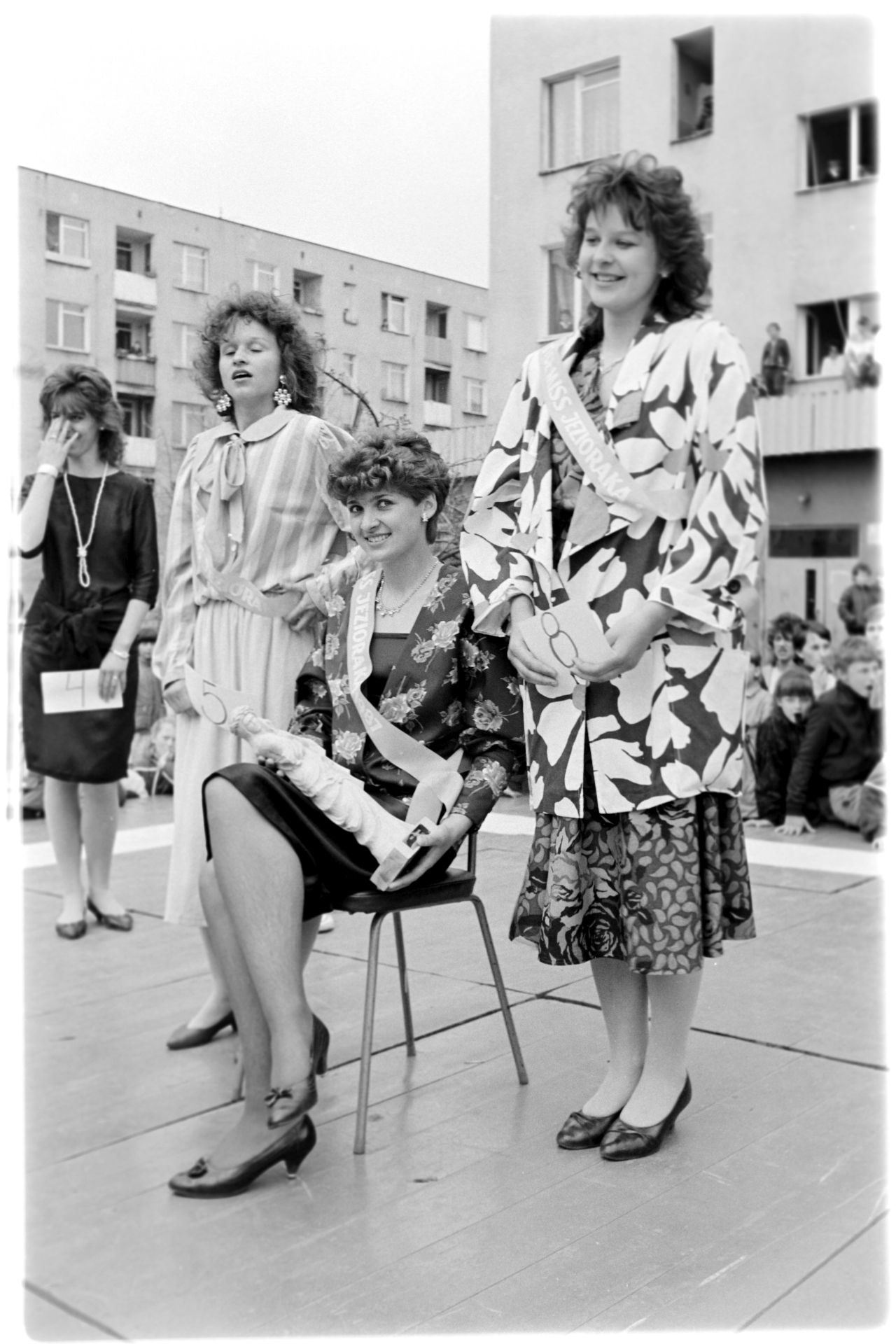 Wszystko wskazywało na to, że w kulminacyjnym punkcie wyborów Miss Jezioraka nie będzie problemów ze znalezieniem pięknych i chętnych. Okazało się jednak inaczej. Jurorzy zmuszeni byli urządzić prawdziwą łapankę, żeby wyłowić z tłumu wypełniającego rynek, te, którym świeciły się oczy, ale nie starczało odwagi, żeby wystąpić publicznie. W końcu prośbą (i nie tylko) zgromadzono 14 reprezentacyjnych iławianek. Publiczność przyjęła je bardzo serdecznie, zaś znakomite jurorki i jurorzy nie tacy straszni jak się zapowiadało. Największą ilość głosów zdobyła 20-letnia przyszła położna: Marzena Budzich. W nagrodę pojedzie do Sopotu na koncerty finałowe Miss Polonia 86.