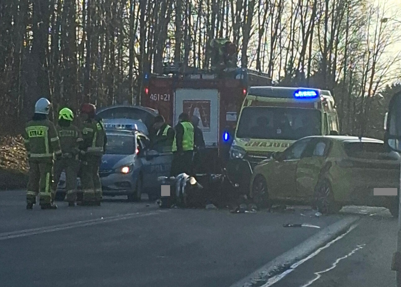 Siła uderzenia była na tyle duża, że zarówno 33-latka, jak i motocyklista zostali przetransportowani do szpitala. Na miejscu pracowali policjanci, którzy zabezpieczyli ślady i ustalali przebieg zdarzenia.