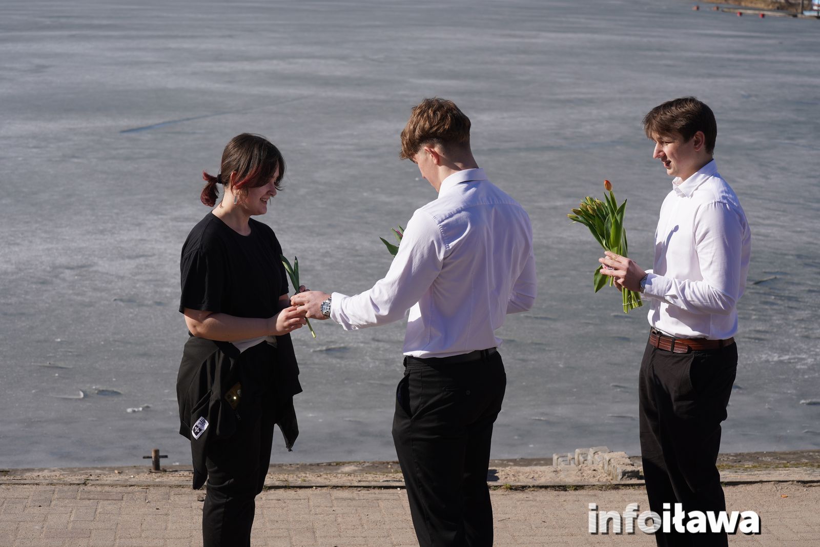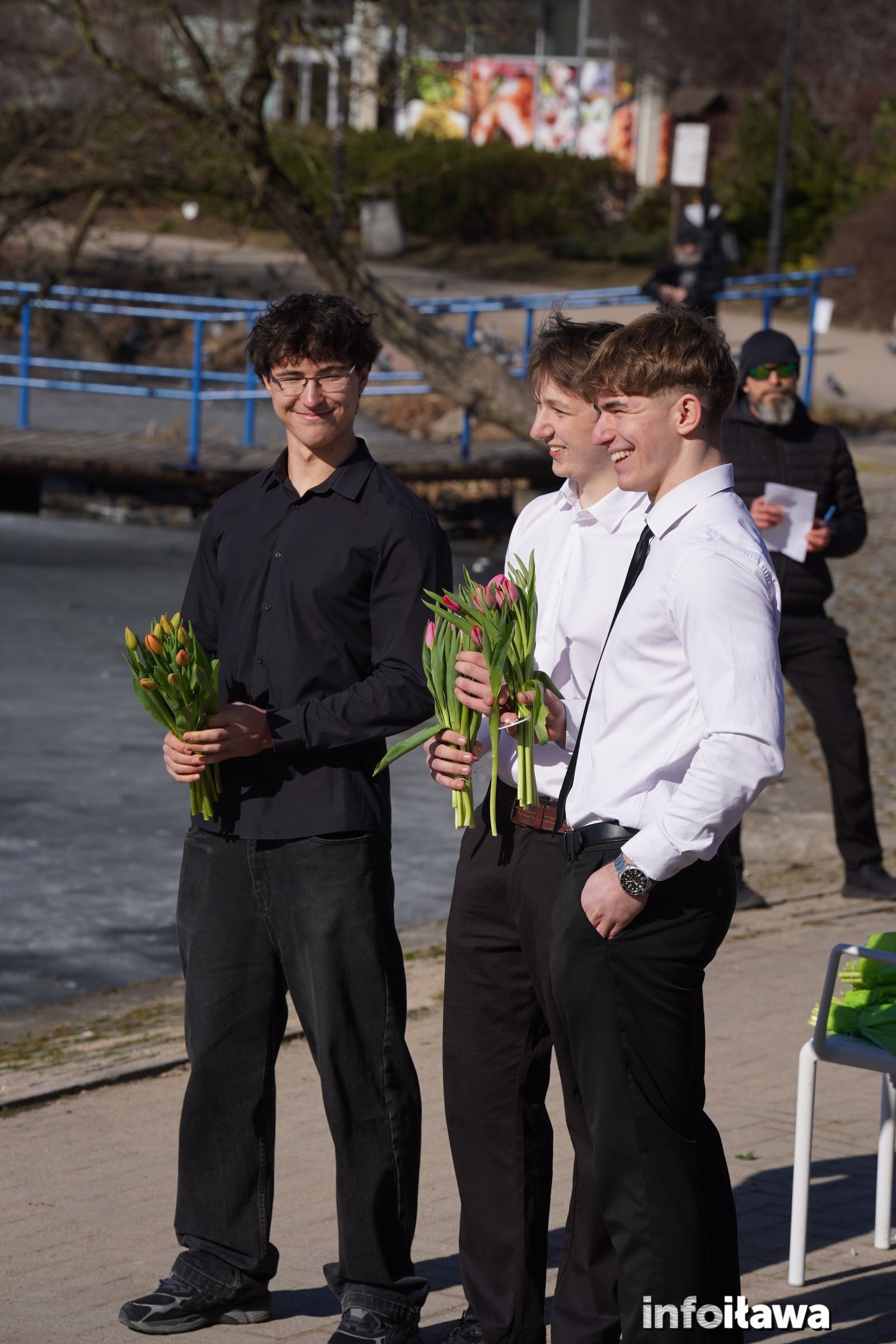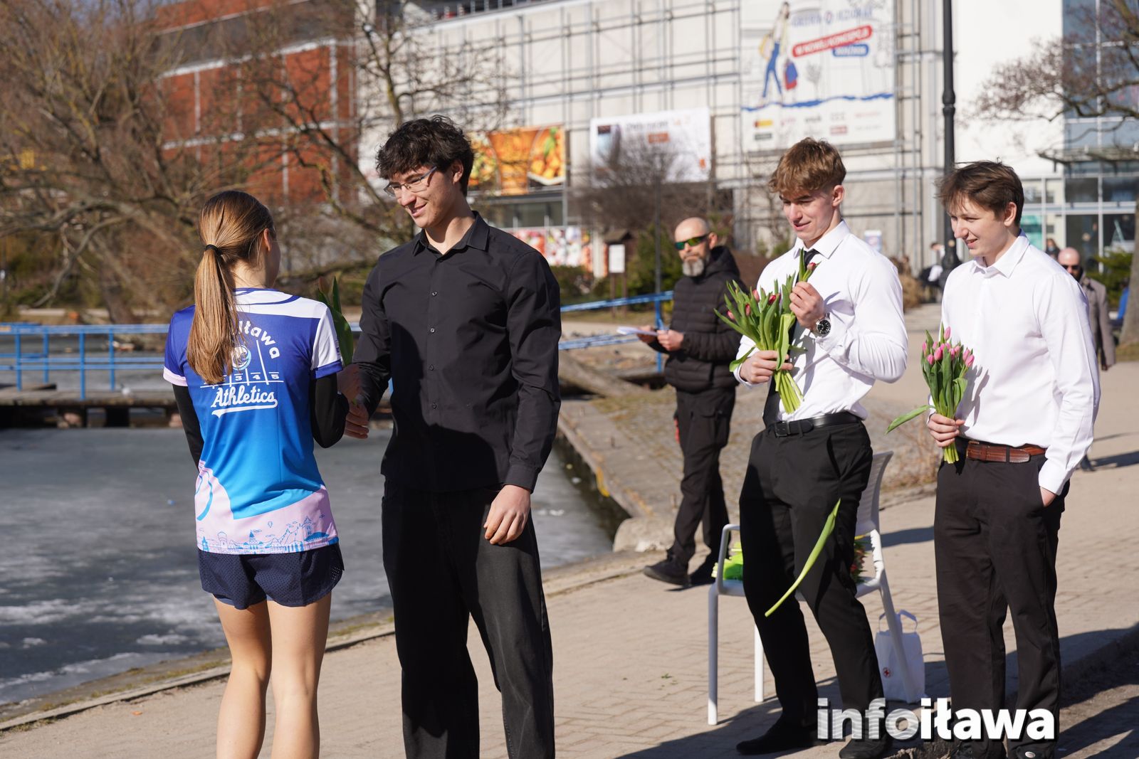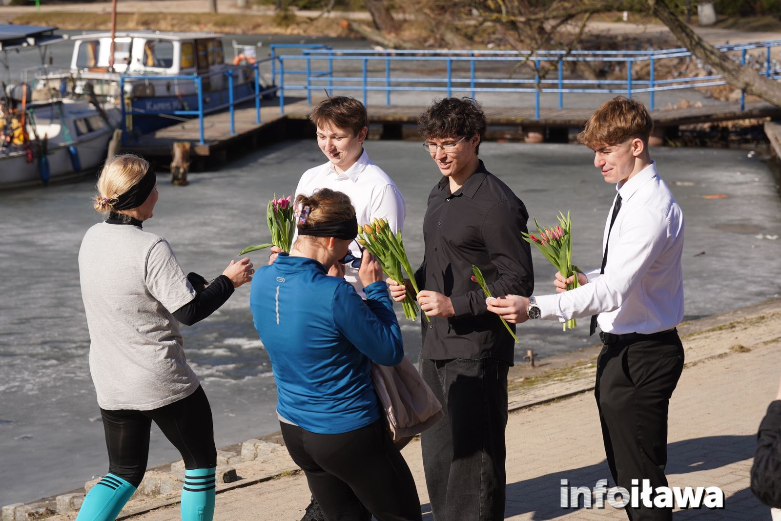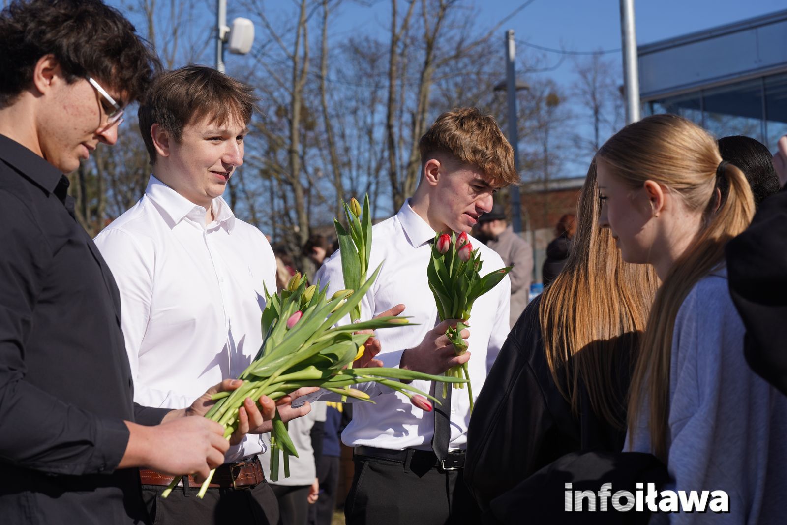 Na mecie na każdą z uczestniczek czekał uśmiech i tulipan – kwiaty wręczała trzyosobowa męska reprezentacja iławskiego liceum: Karol, Mateusz i Filip.