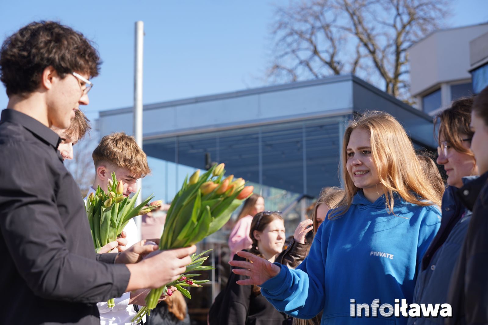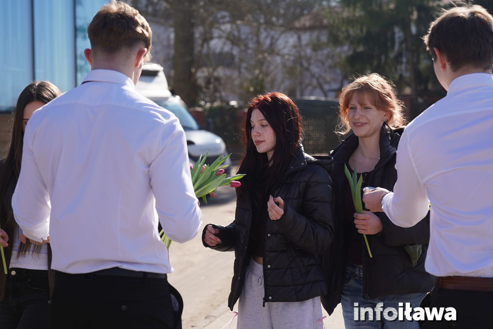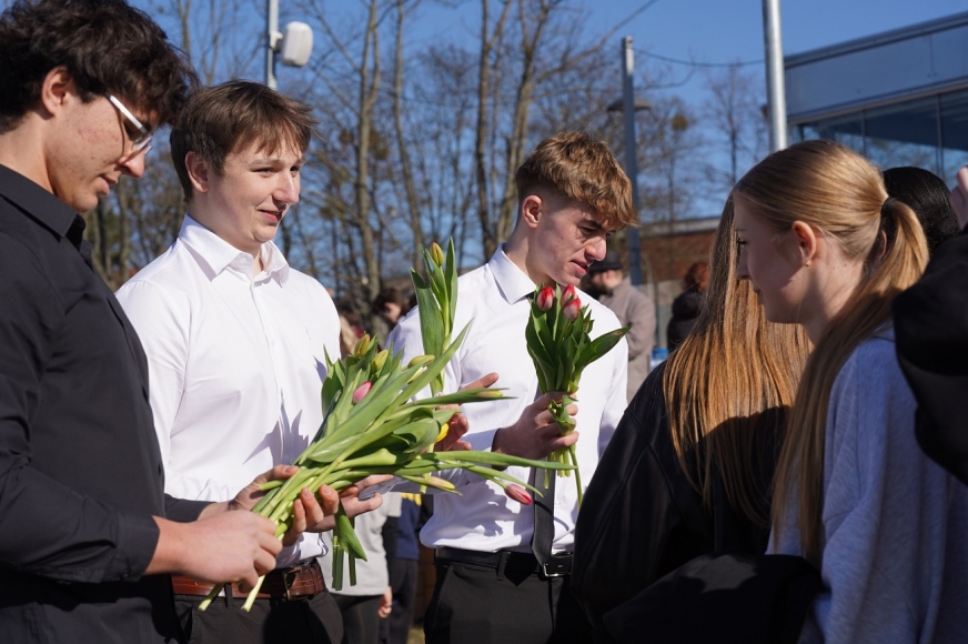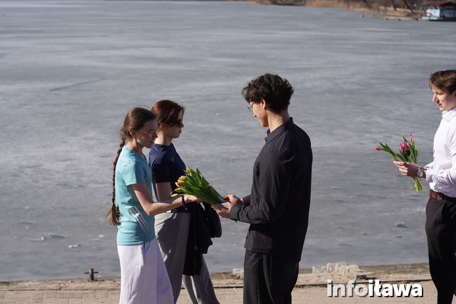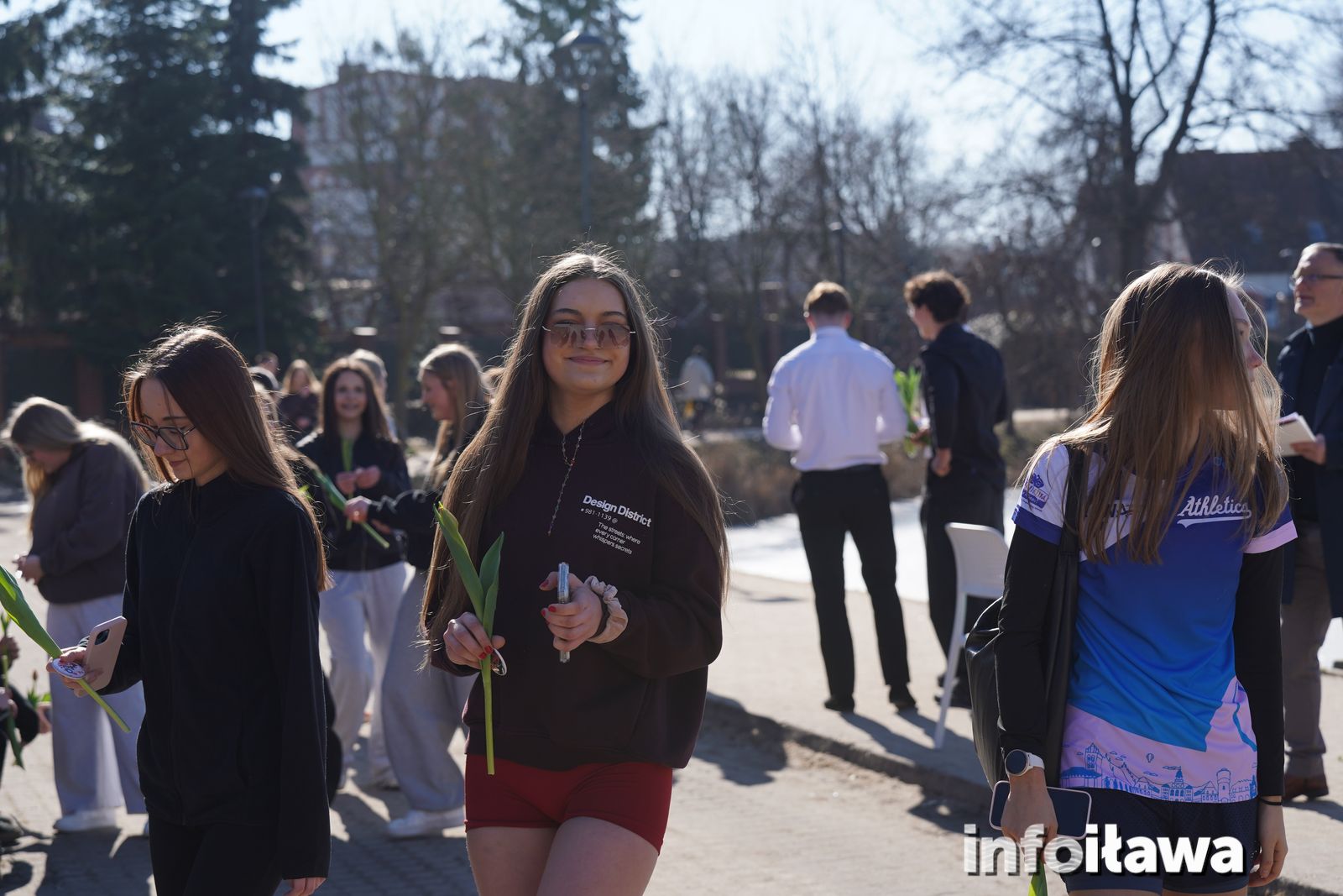 Na mecie na każdą z uczestniczek czekał uśmiech i tulipan – kwiaty wręczała trzyosobowa męska reprezentacja iławskiego liceum: Karol, Mateusz i Filip.