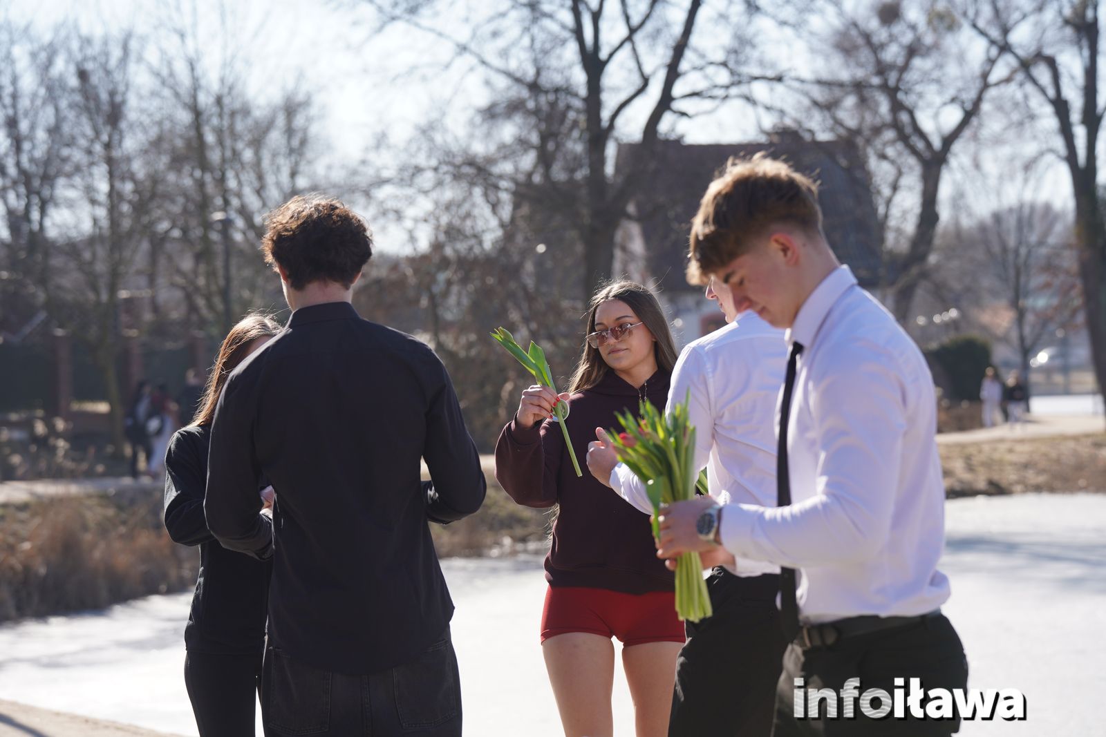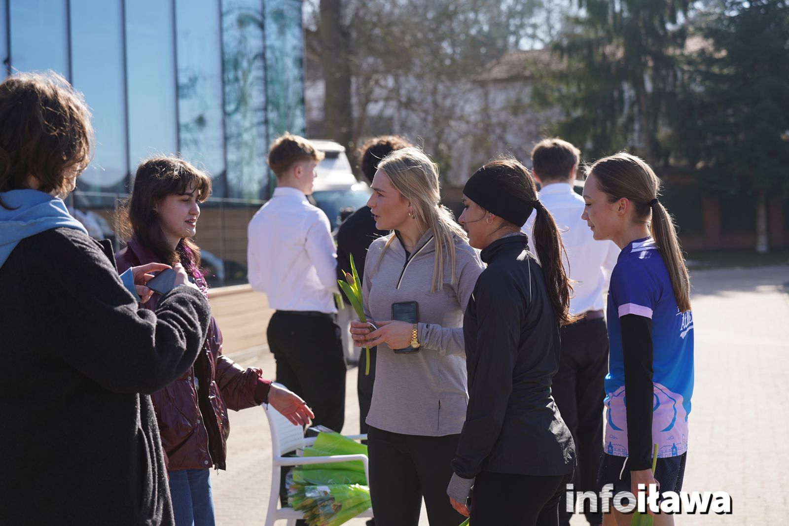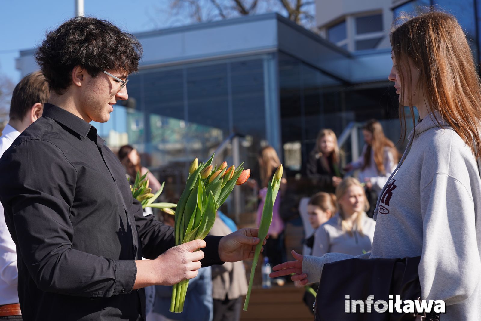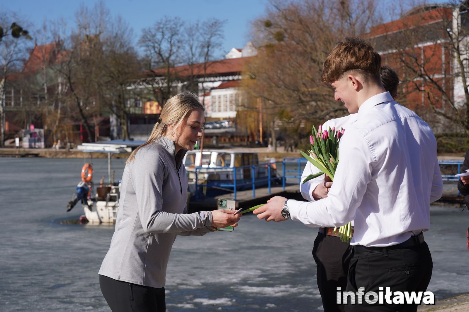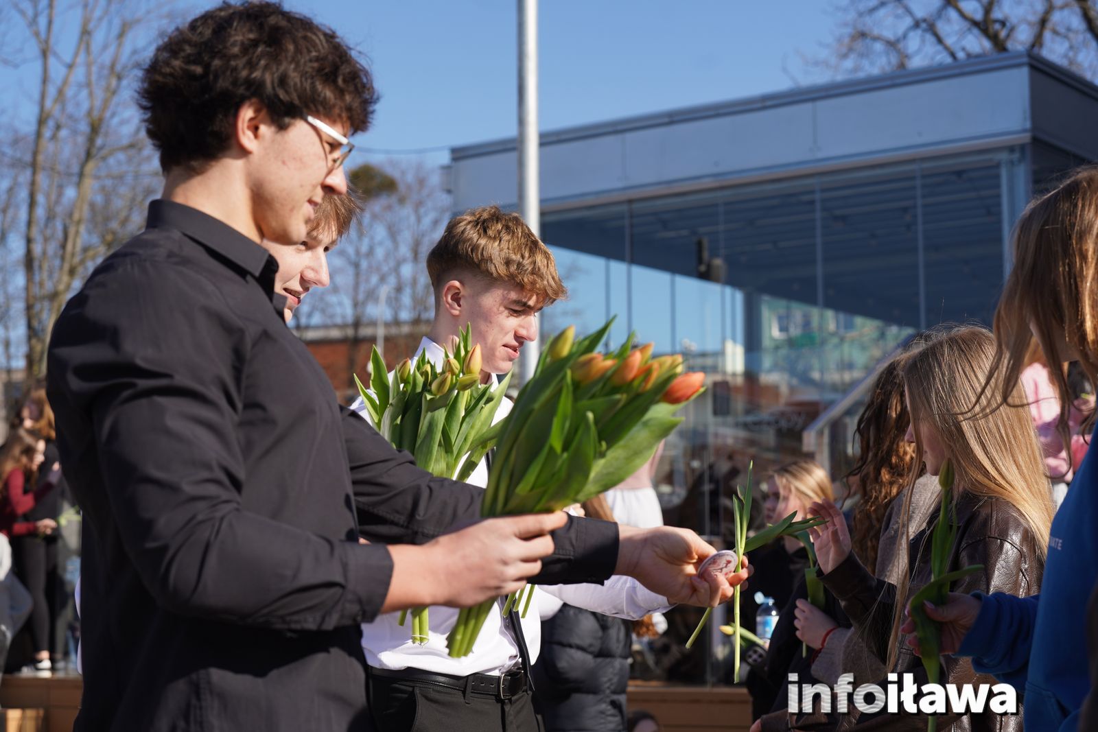 Na mecie na każdą z uczestniczek czekał uśmiech i tulipan – kwiaty wręczała trzyosobowa męska reprezentacja iławskiego liceum: Karol, Mateusz i Filip.