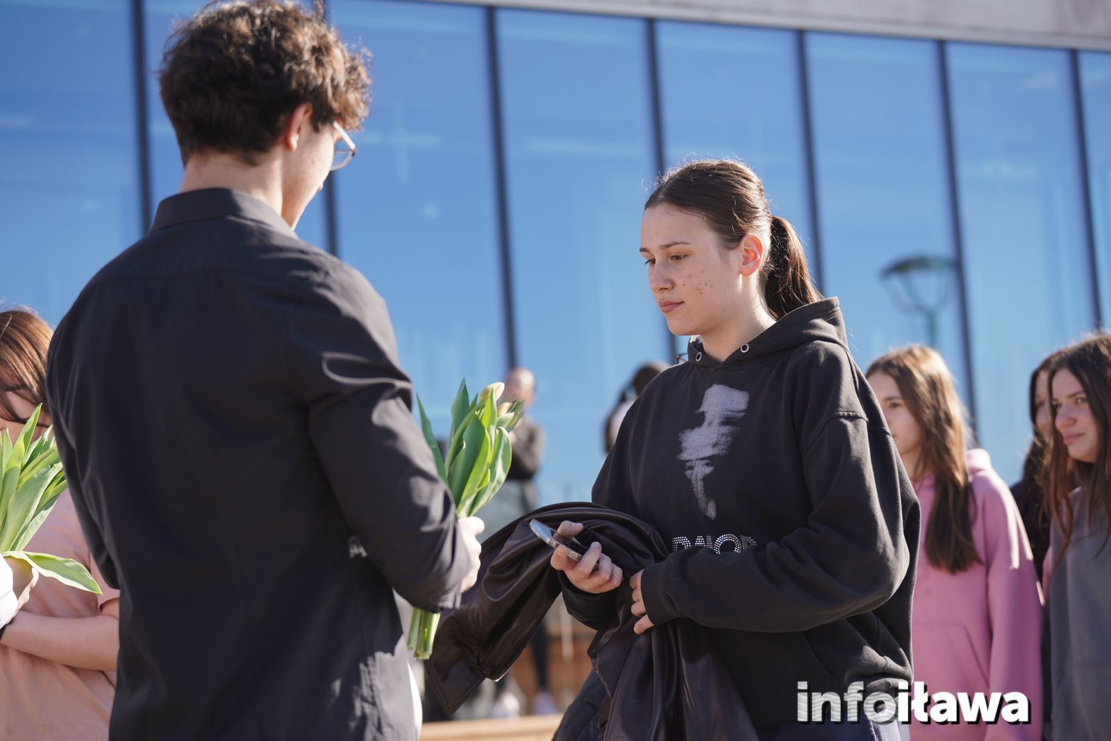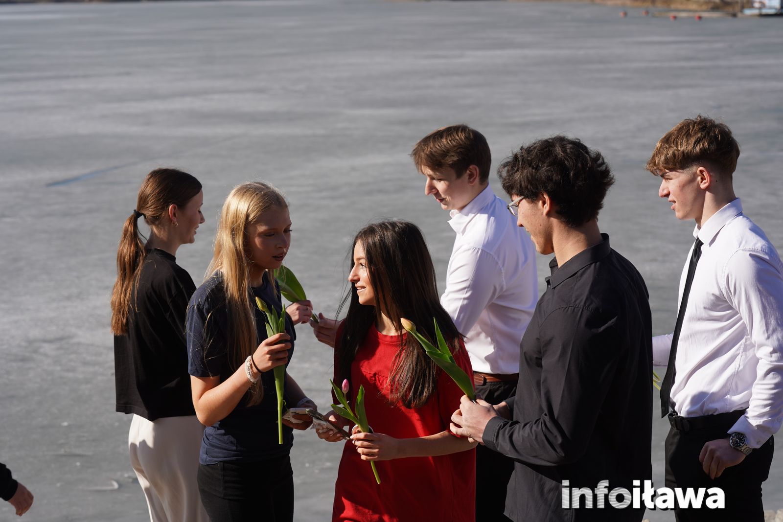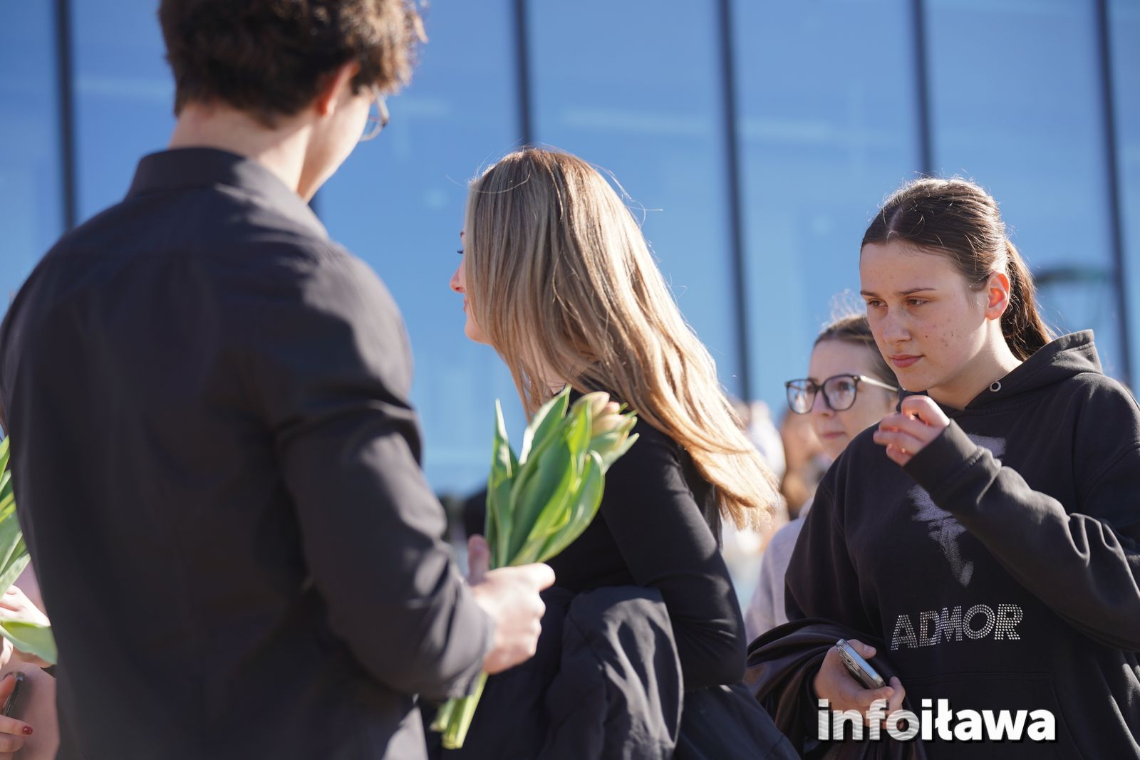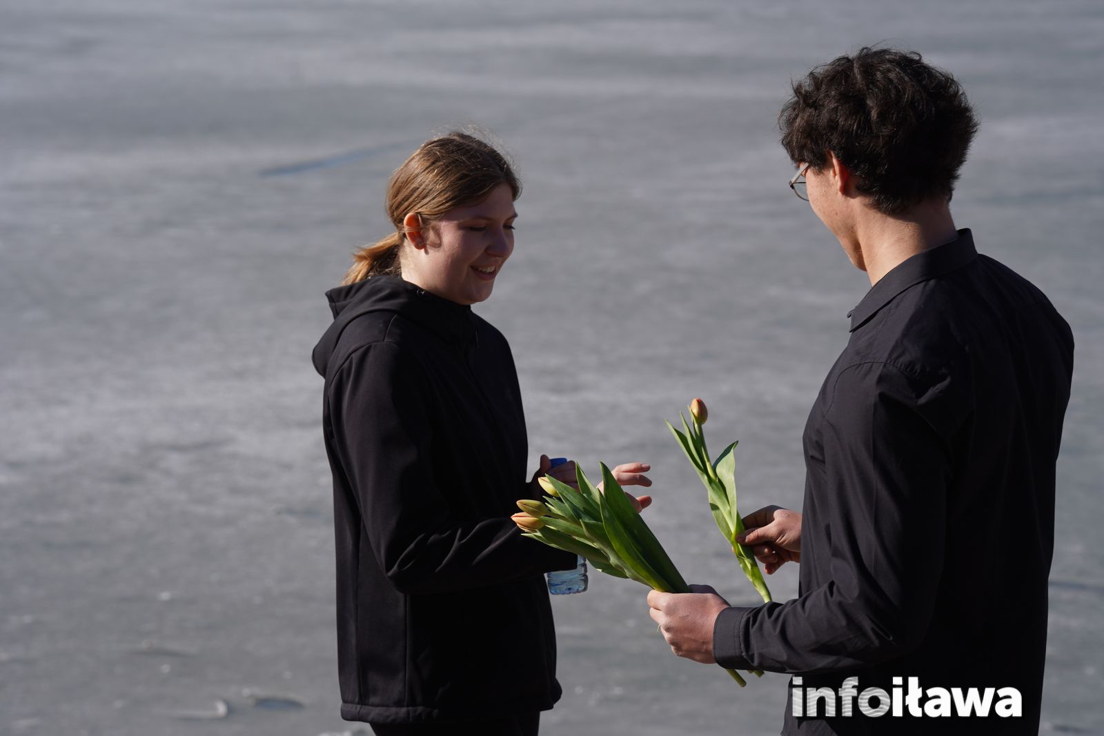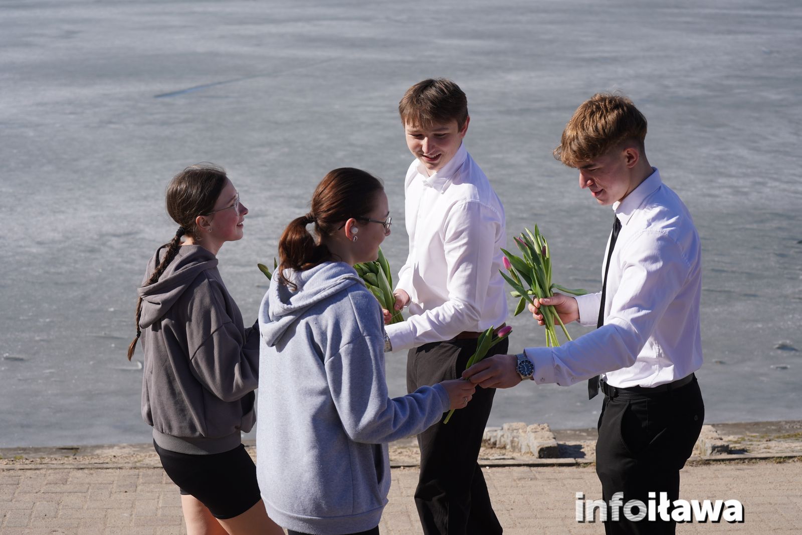 Na mecie na każdą z uczestniczek czekał uśmiech i tulipan – kwiaty wręczała trzyosobowa męska reprezentacja iławskiego liceum: Karol, Mateusz i Filip.