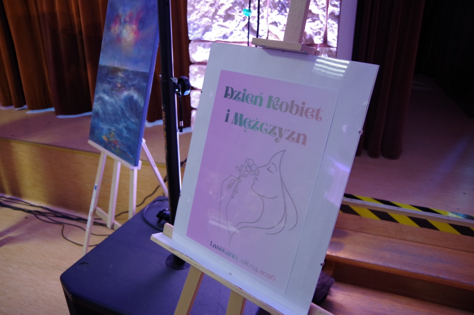 Sala widowiskowa Gminnego Ośrodka Kultury w Lasecznie wypełniła się publicznością, która przyszła wspólnie świętować Dzień Kobiet podczas wydarzenia łączącego różne formy sztuki. Program wieczoru połączył malarstwo, teatr i muzykę.