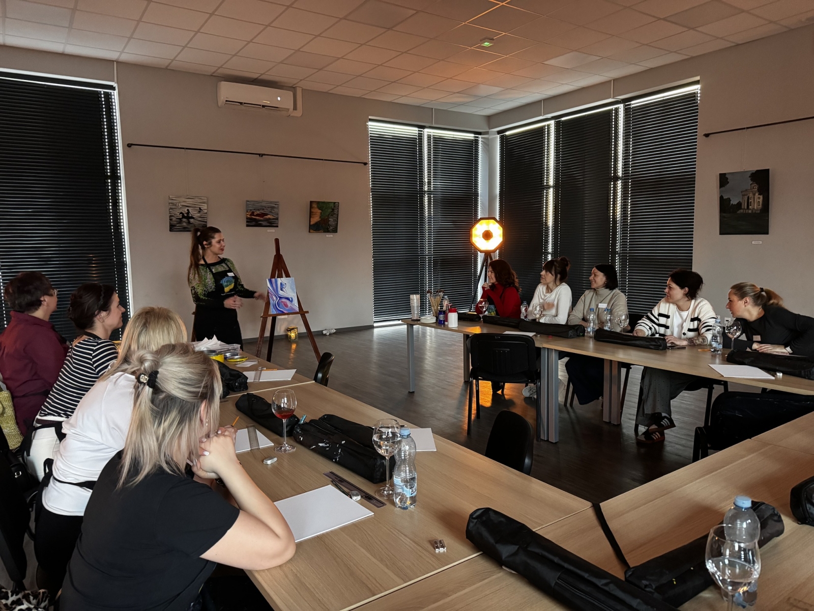 Sobotę wypełniły warsztaty artystyczne „Pędzle, wino i… my!”, które poprowadziła Beata Jabłońska. Uczestniczki pracowały przy sztalugach, rozmawiały i spędzały czas w spokojniejszej, kameralnej atmosferze.