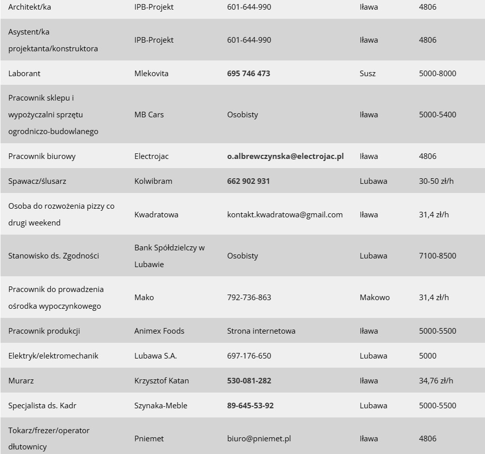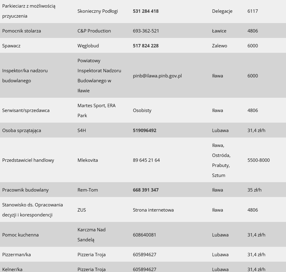 Dziś prezentujemy Wam prawie 50 nowych ofert pracy, jakie w ciągu minionego tygodnia pojawiły się w bazie Powiatowego Urzędu Pracy w Iławie. Zapraszamy wszystkich poszukujących zatrudnienia w Iławie i powiecie iławskim do zapoznania się ze szczegółami.