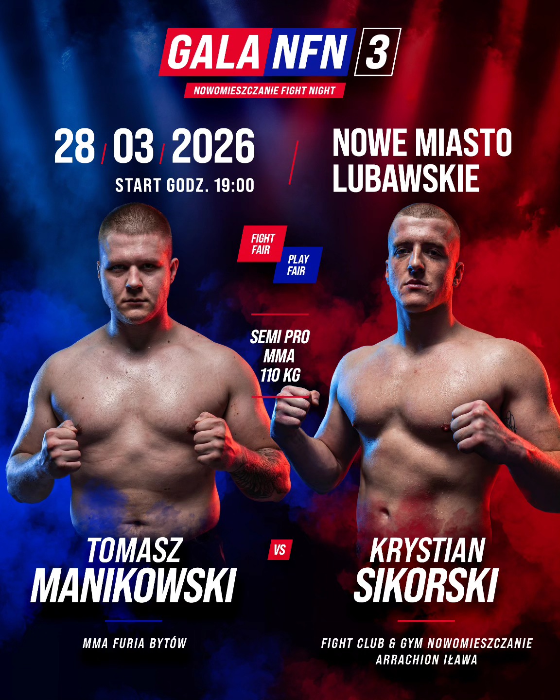 Walki zawodników Arrachiona Iława na gali NFN 3 (gala odbędzie się 28 marca 2026). Grafiki: NFN