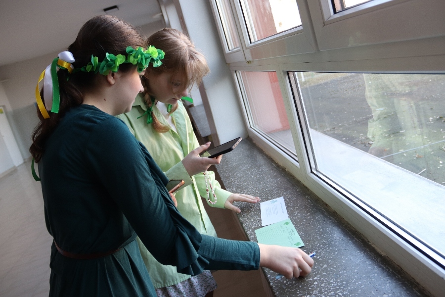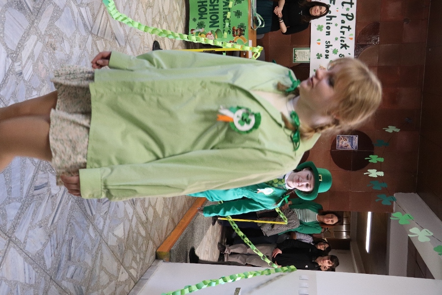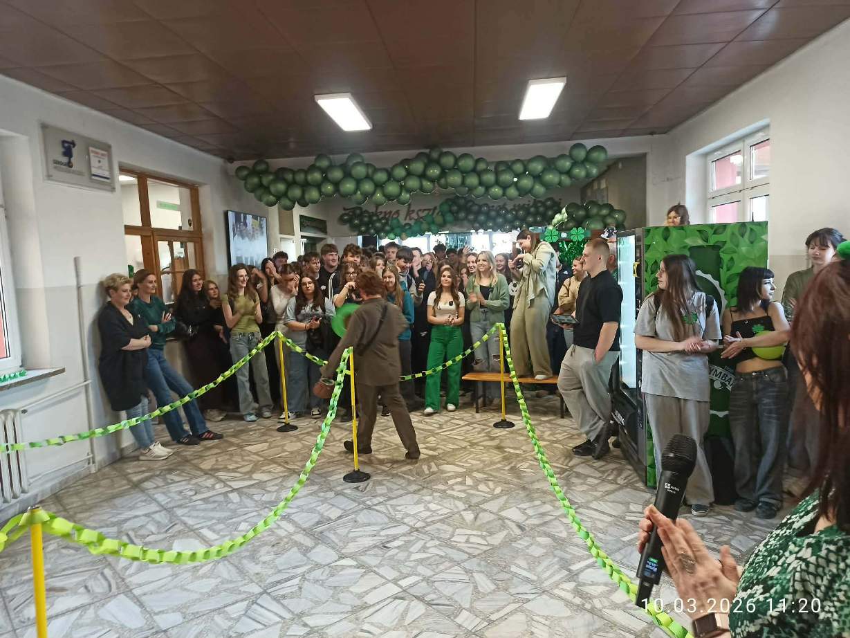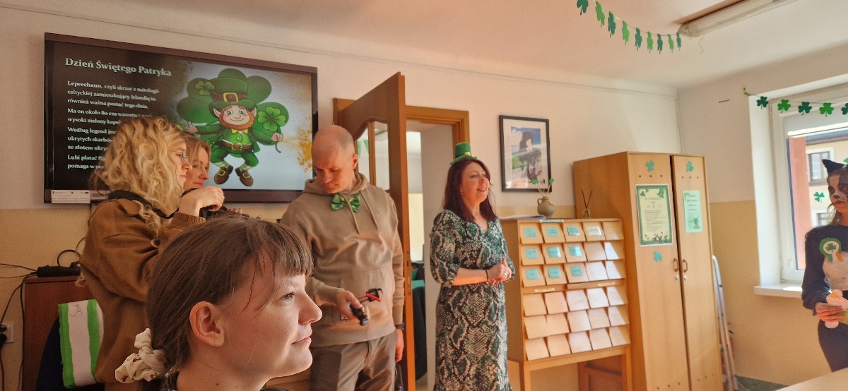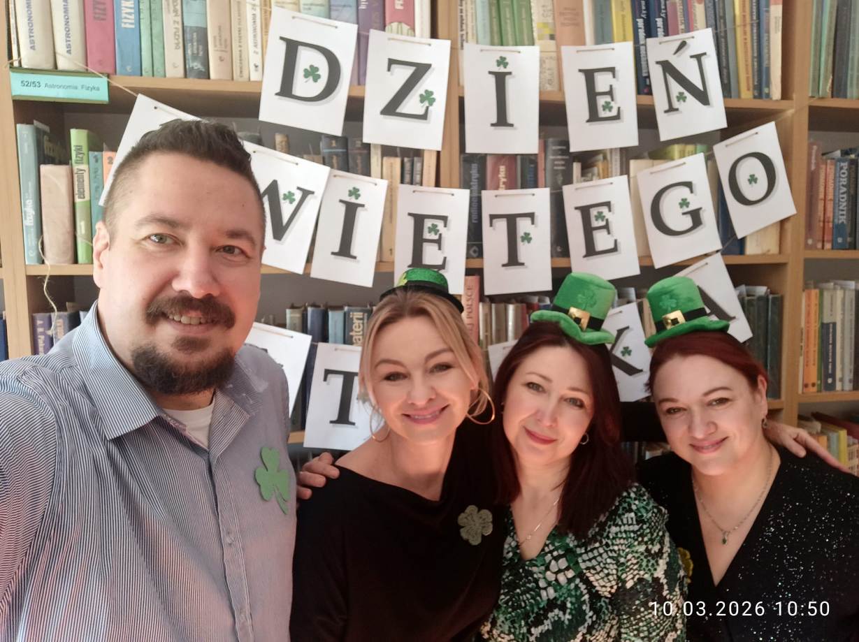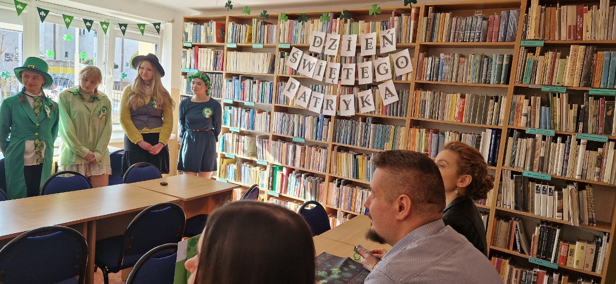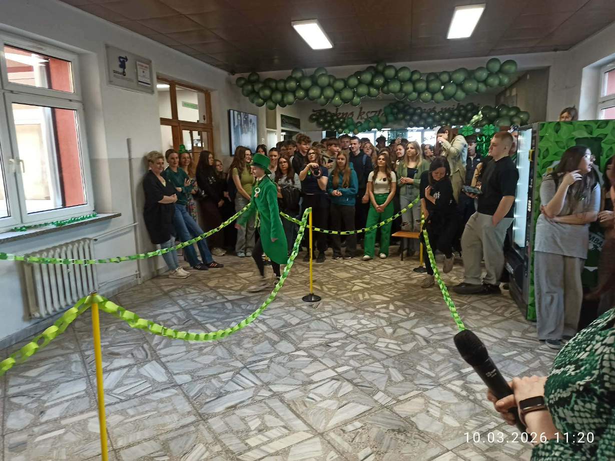 W szkolnej czytelni odbył się konkurs na najlepszy strój inspirowany kulturą irlandzko-celtycką. Uczniowie zaprezentowali dopracowane i różnorodne kreacje, nawiązujące zarówno do tradycji, jak i symboliki Irlandii. Jury oceniało wygląd i sposób prezentacji postaci. W tym roku wsparciem dla komisji była specjalna aplikacja przygotowana przez uczniów klasy programistycznej. Najwyżej oceniono Julię Lewandowską z klasy 4c. Drugie miejsce zajęła Małgorzata Rybak, a trzecie Paweł Rudnik.