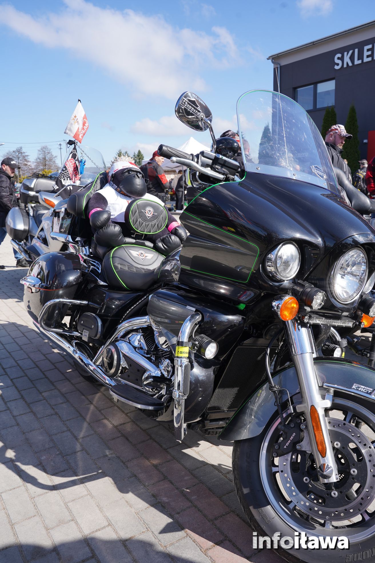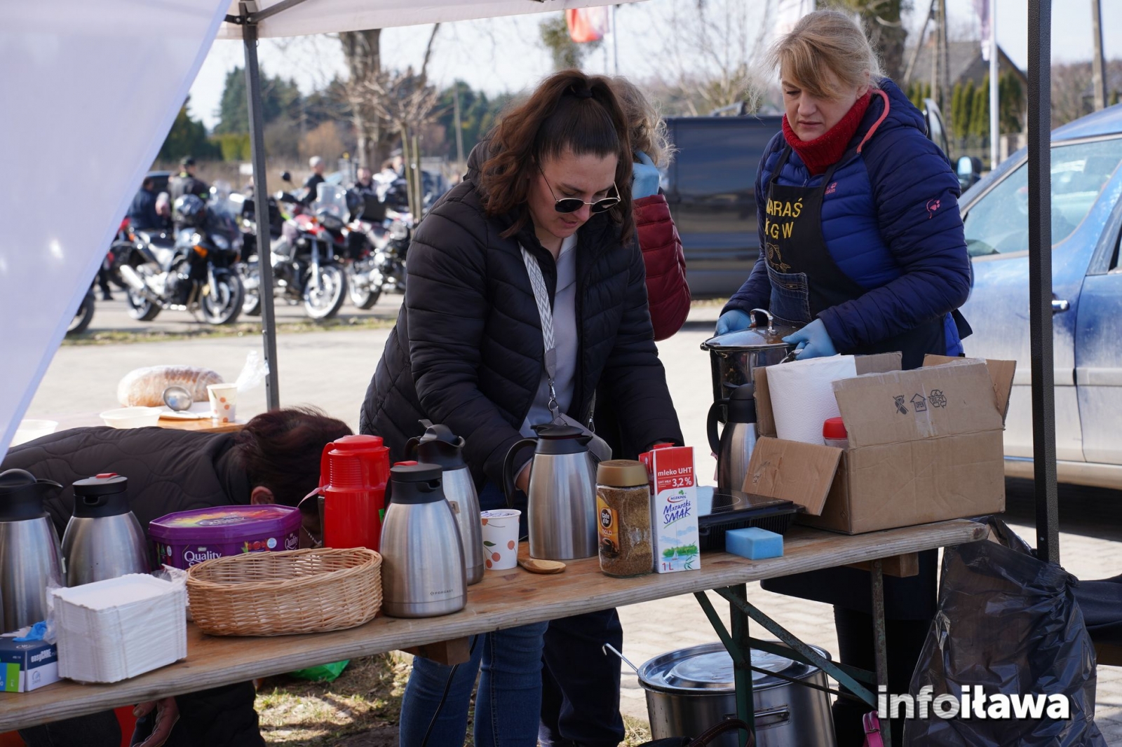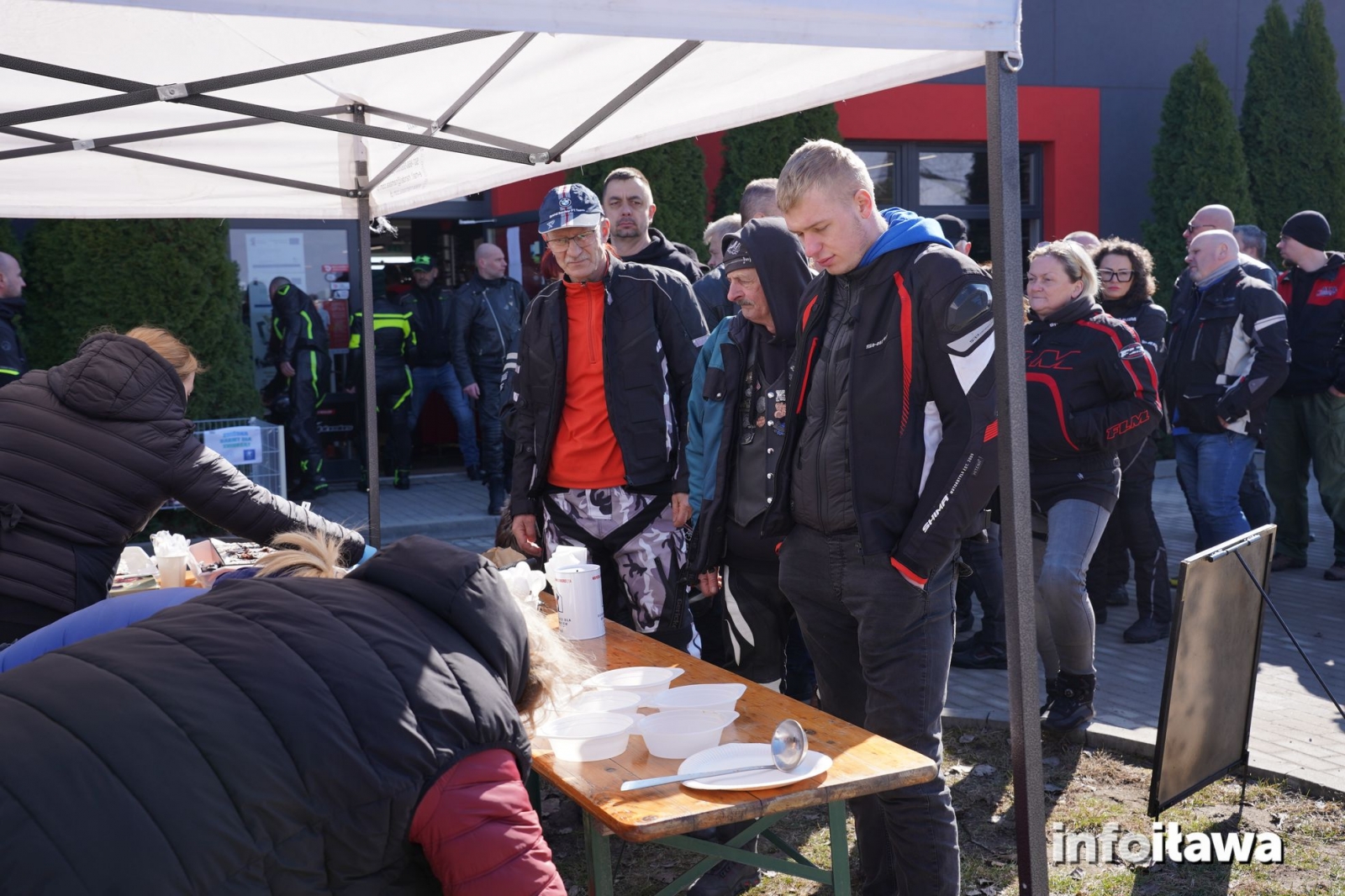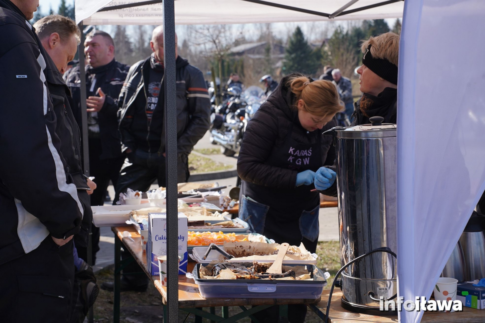 Na miejscu nie zabrakło też poczęstunku przygotowanego przez panie z KGW Karasianki – pierwsi uczestnicy mogli skorzystać z darmowego, ciepłego poczęstunku, a w sklepie czekały wyraźne obniżki na odzież i akcesoria motocyklowe.
