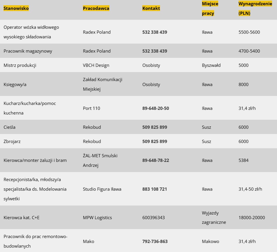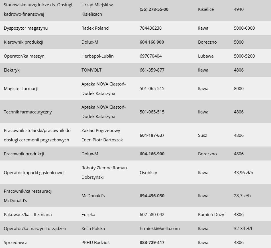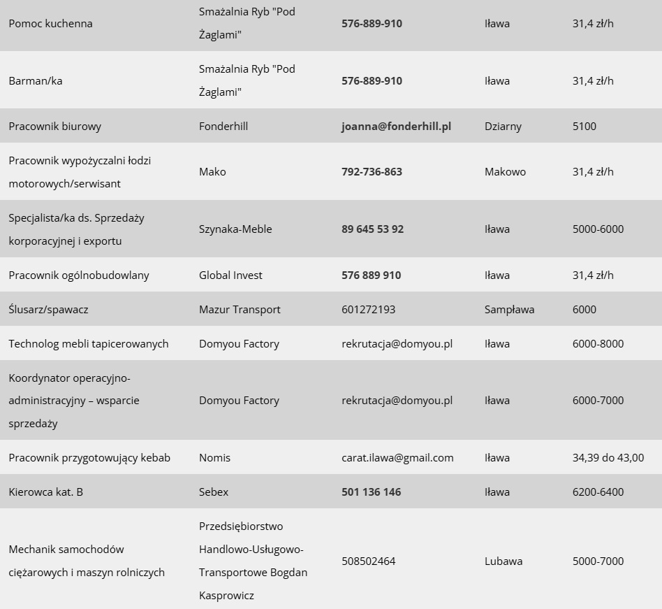 Dziś prezentujemy Wam prawie 40 nowych ofert pracy, jakie w ciągu minionego tygodnia pojawiły się w bazie Powiatowego Urzędu Pracy w Iławie. Zapraszamy wszystkich poszukujących zatrudnienia w Iławie i powiecie iławskim do zapoznania się ze szczegółami.