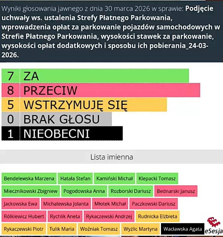 Uchwała nie uzyskała większości – to znaczy, że płatne parkingi w naszym mieście – przynajmniej na razie – nie staną się faktem.