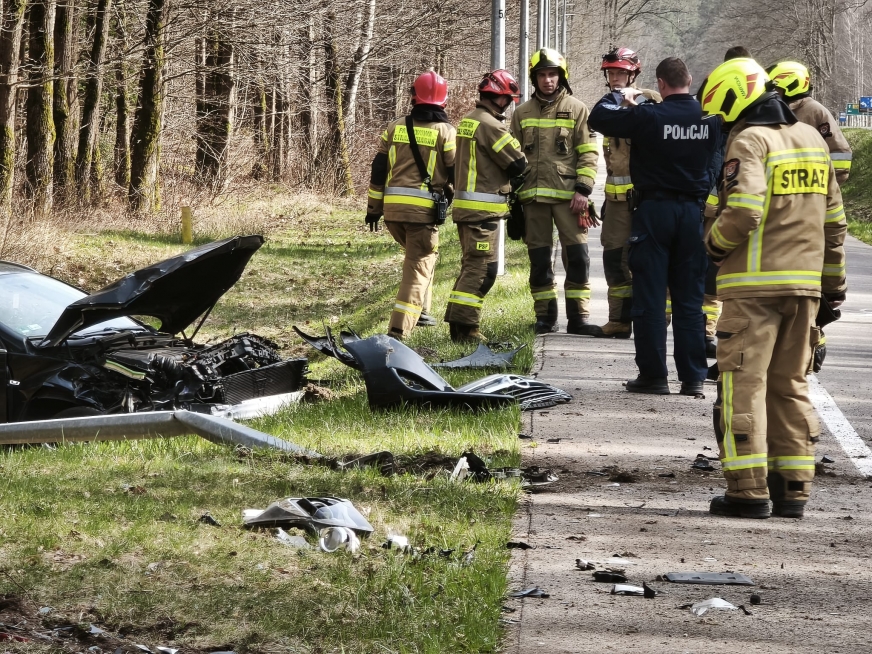 Na szpitalny oddział ratunkowy przetransportowano dwie osoby, 28-letniego kierującego i jego pasażerkę. Droga zostanie wkrótce odblokowana.
