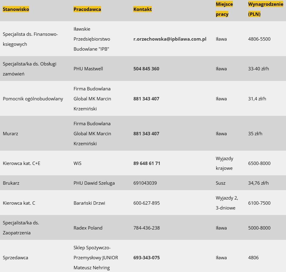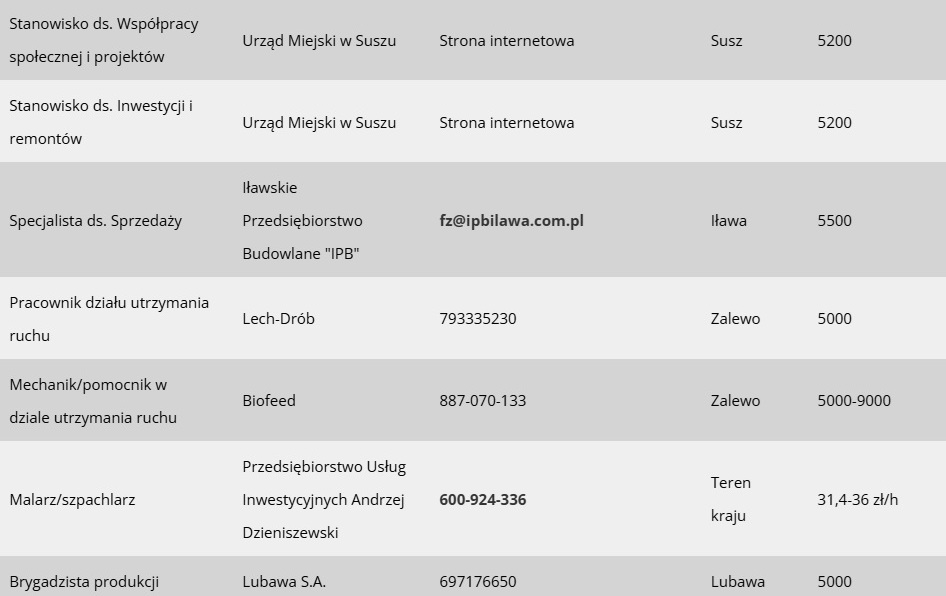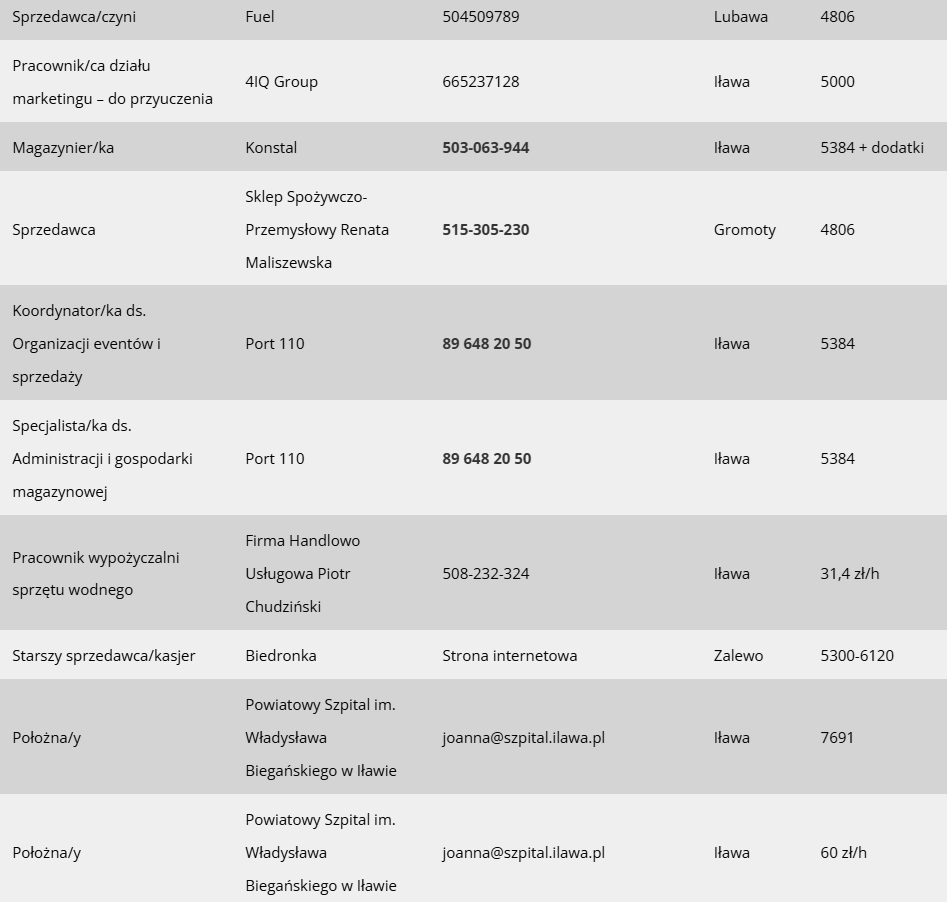 Jak co poniedziałek mamy dla Was przegląd najnowszych ofert pracy dostępnych w Iławie i w powiecie. Tym razem jest ich prawie 30. Oferty pochodzą z bazy Powiatowego Urzędu Pracy w Iławie, z ostatnich 7 dni.